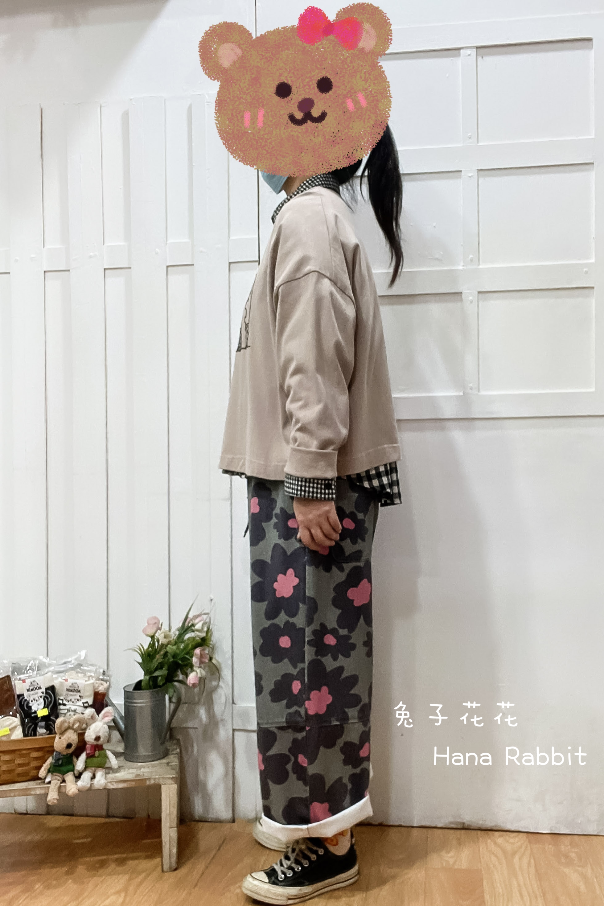 刺繡跳舞兔重磅棉上衣(奶茶) 13364