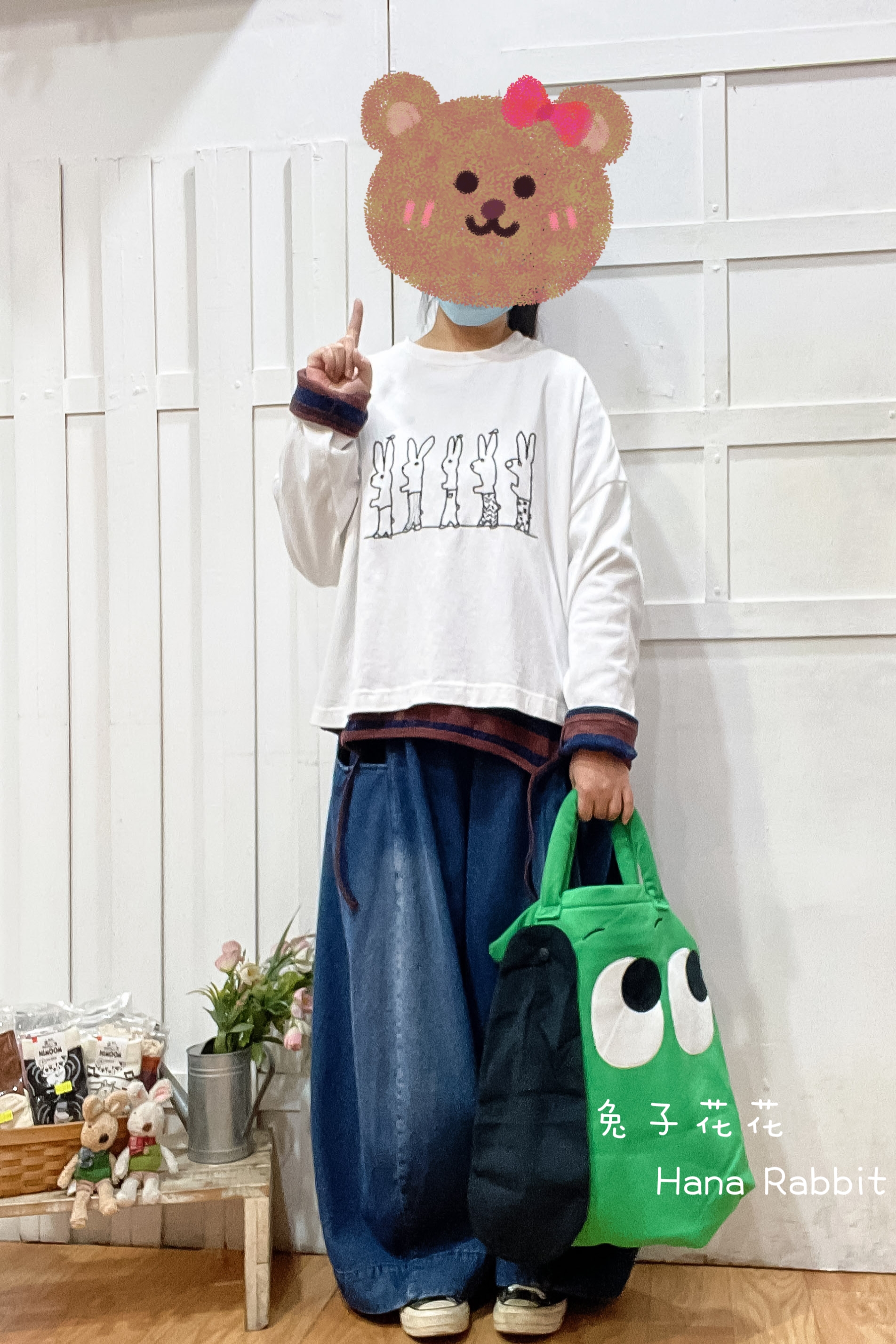 刺繡跳舞兔重磅棉上衣(白) 13364