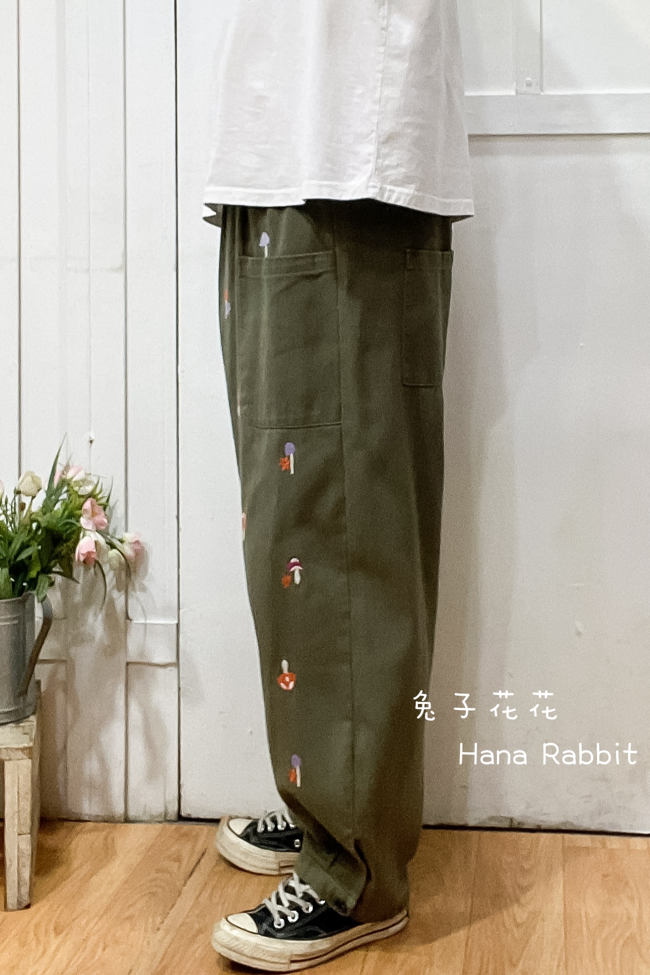 可愛感刺繡小蘑菇造型褲 19242