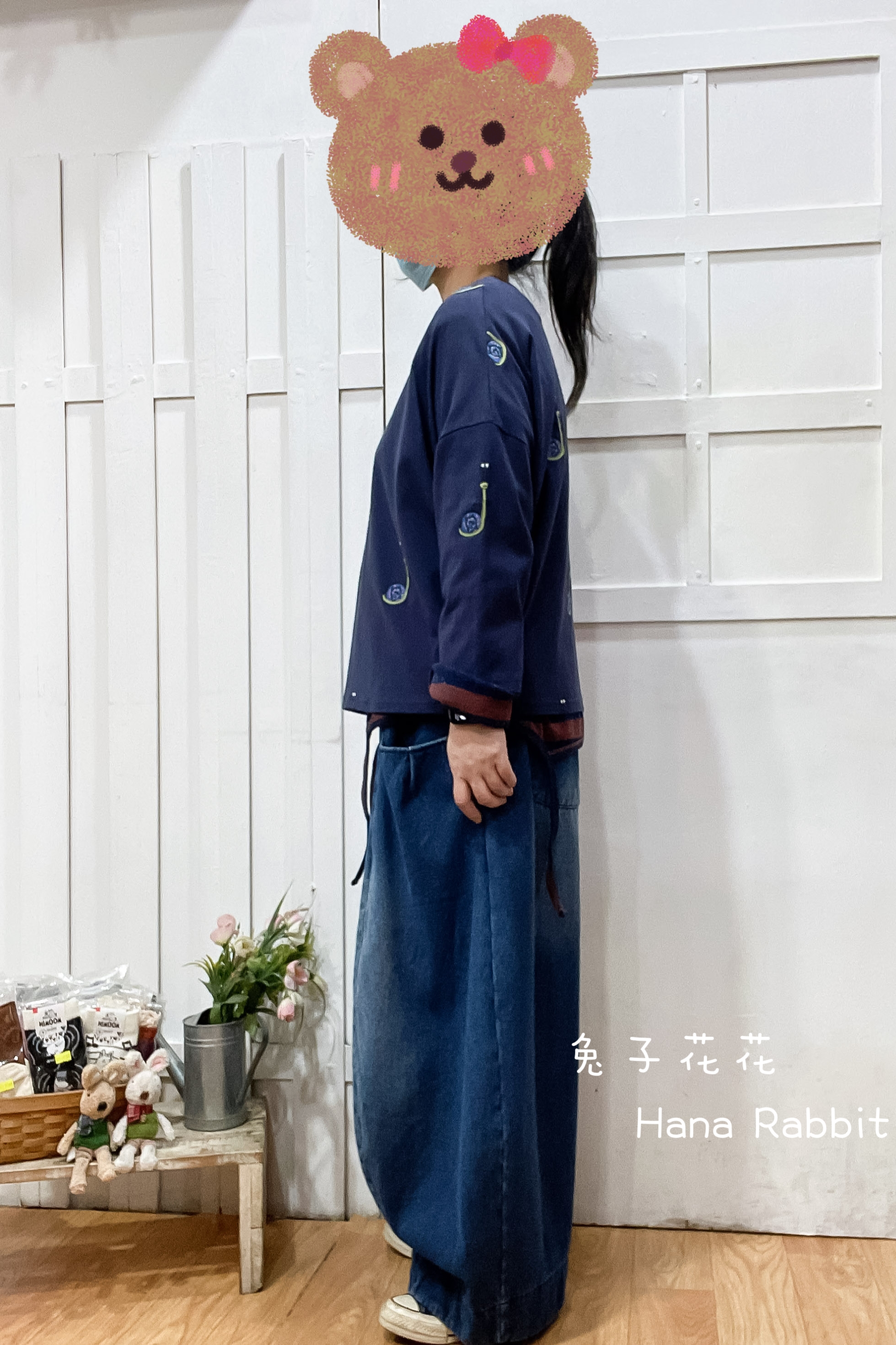 可愛感刺繡小鍋重磅棉上衣(藍) 13571