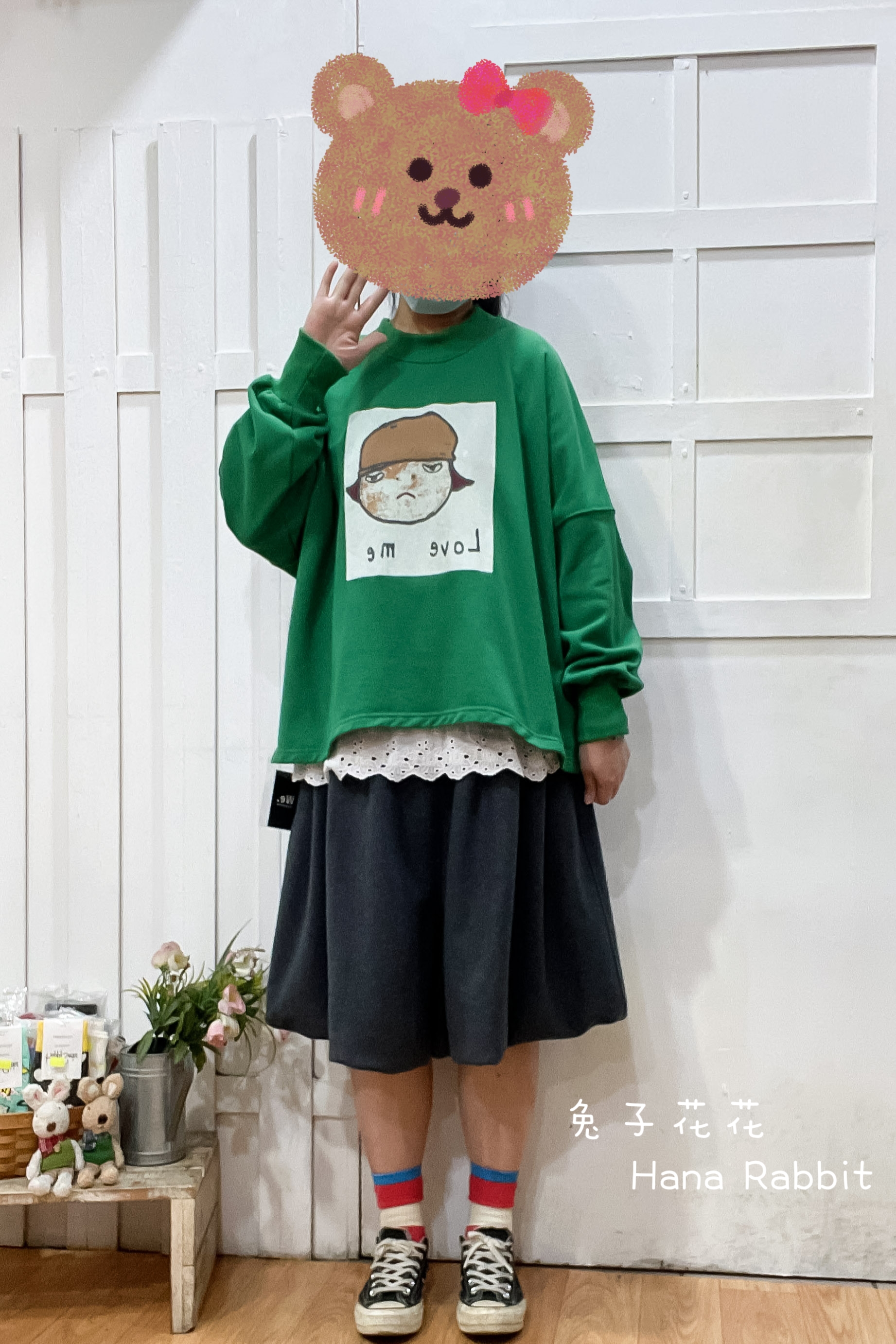 新色到❤❤WE家厭世女印花毛圈棉上衣(綠) 15950