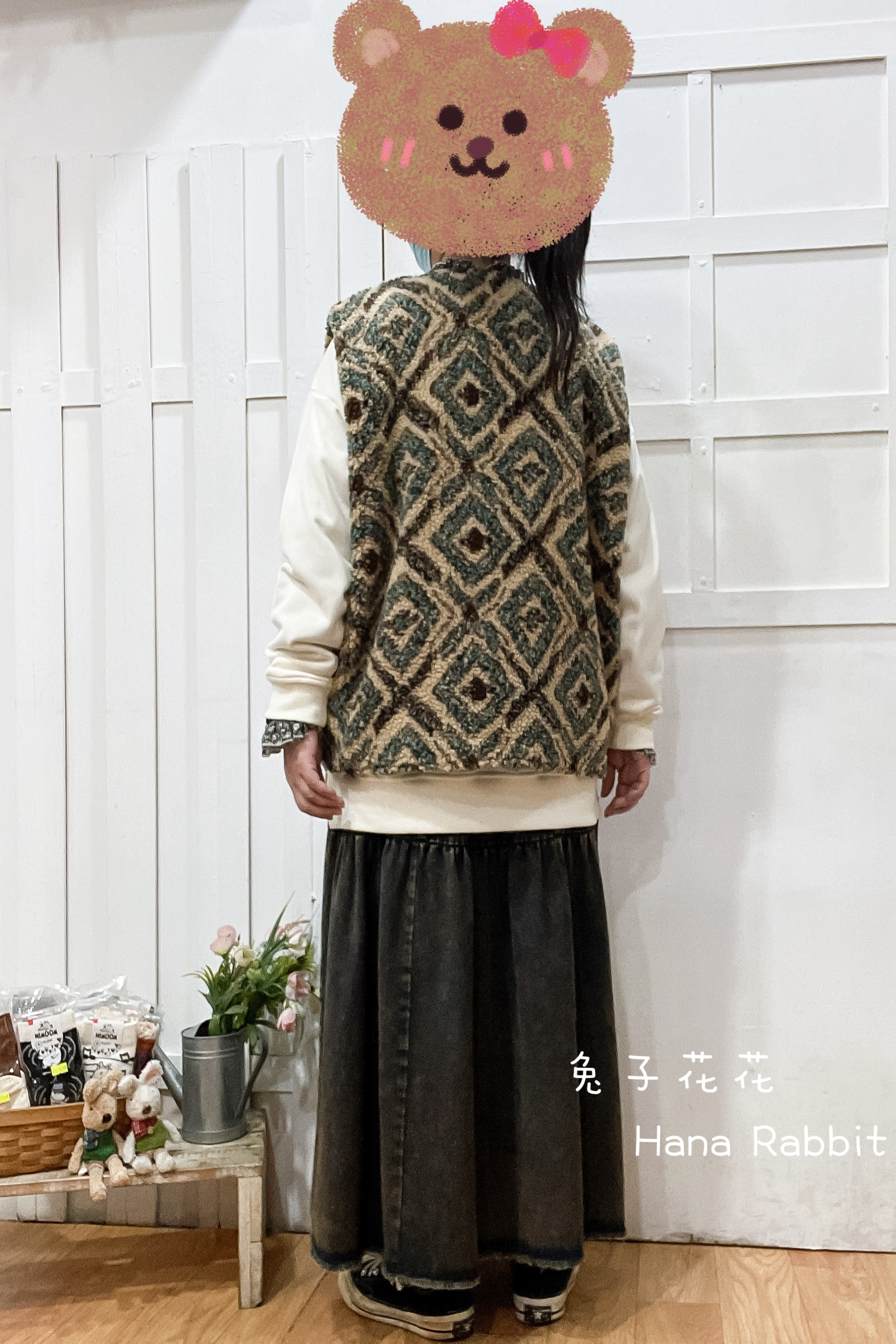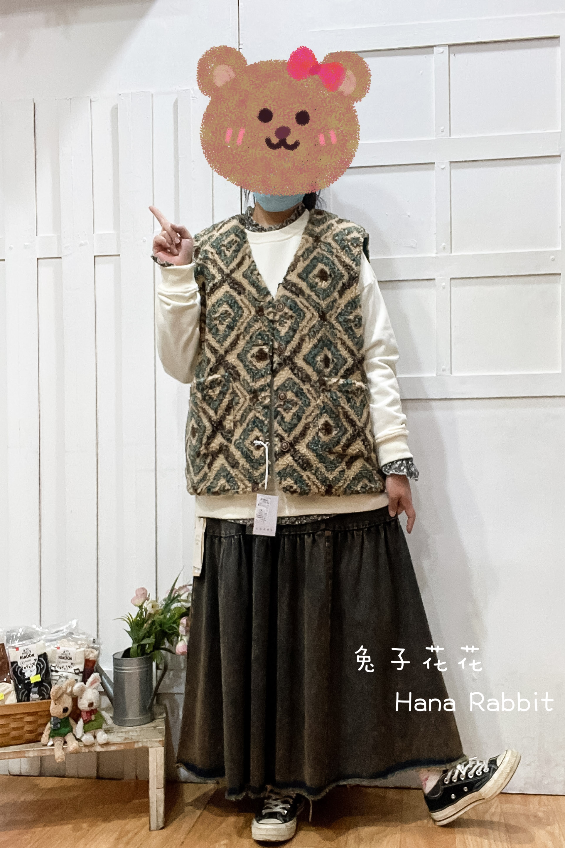 新色到❤❤WE家復古花色羊羔絨2穿背心(杏) 15436