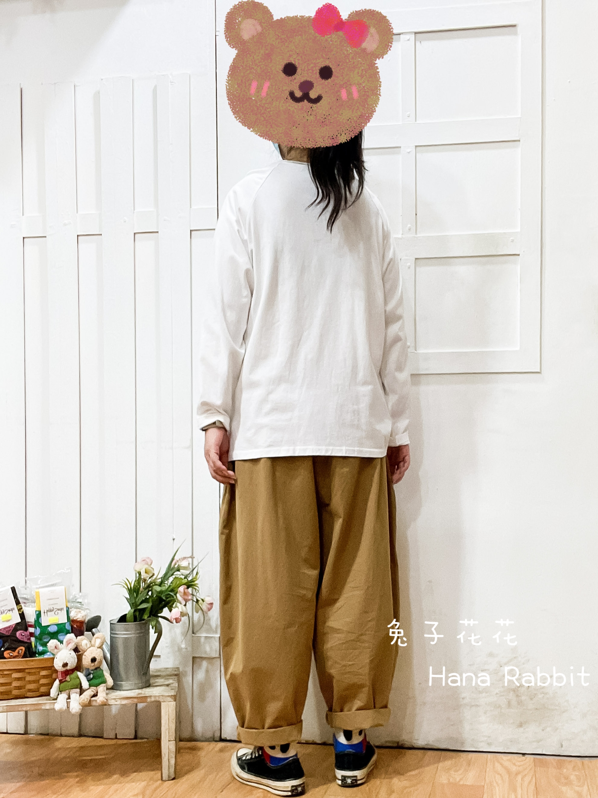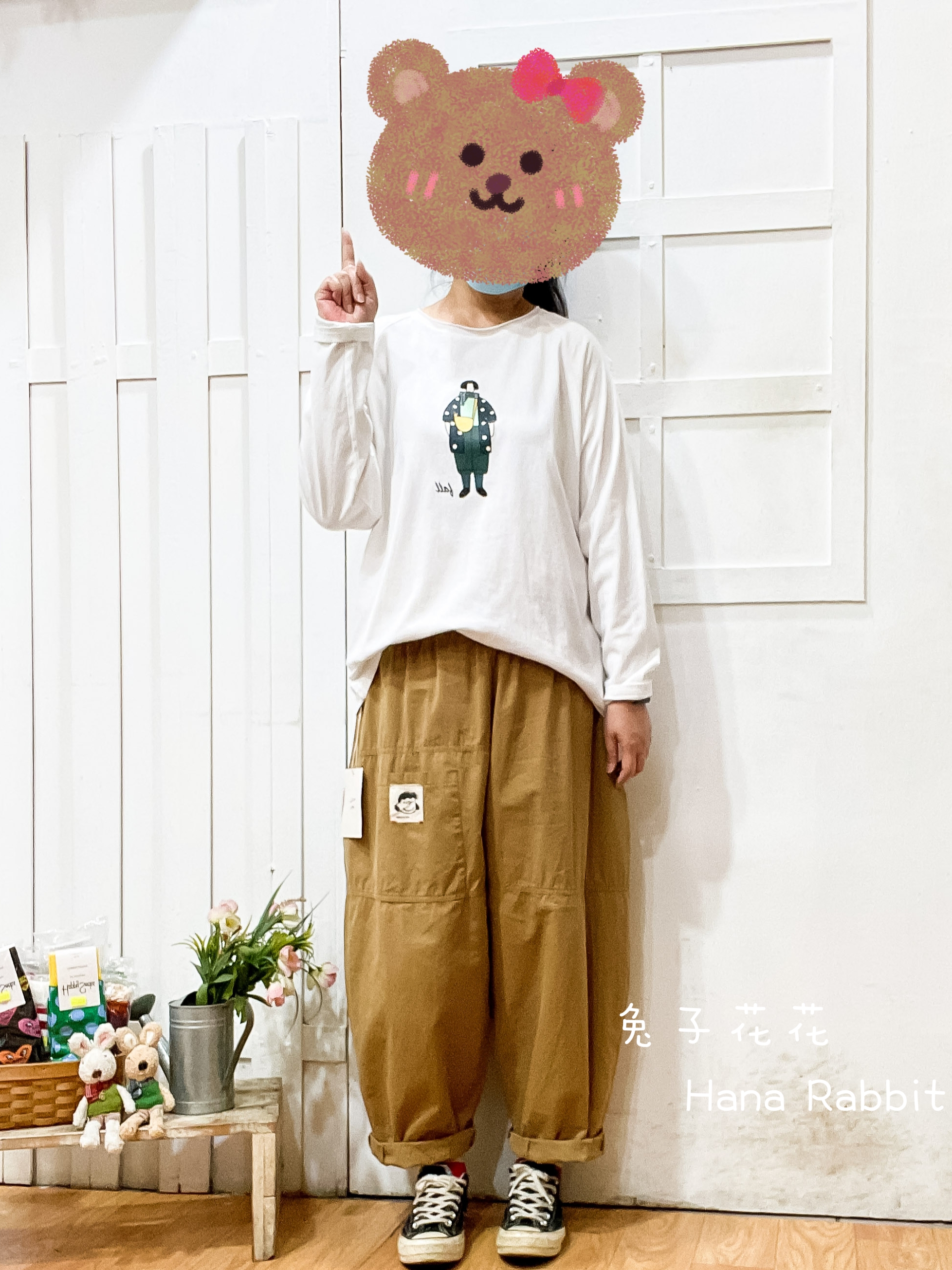 刺繡跳舞兔重磅棉上衣(白) 13364