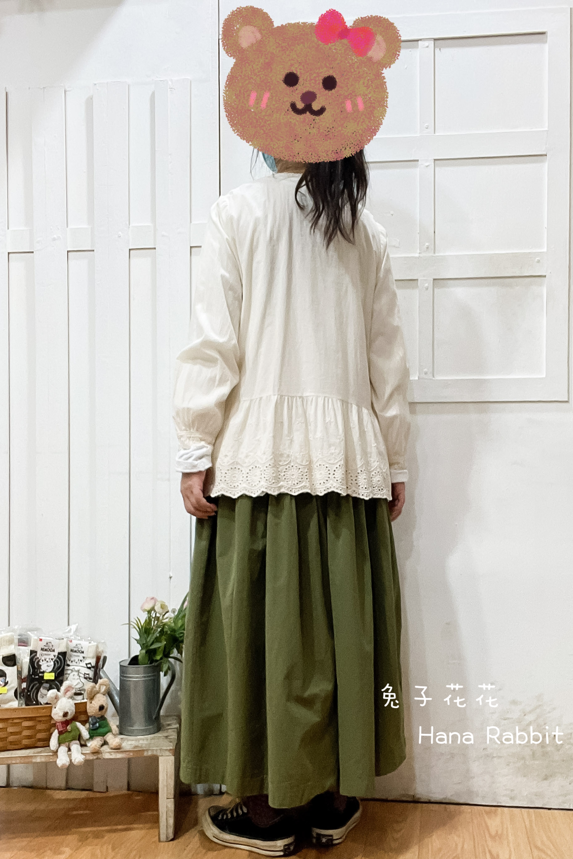 日系不敗款拚接蕾絲開襟上衣(杏) 14323
