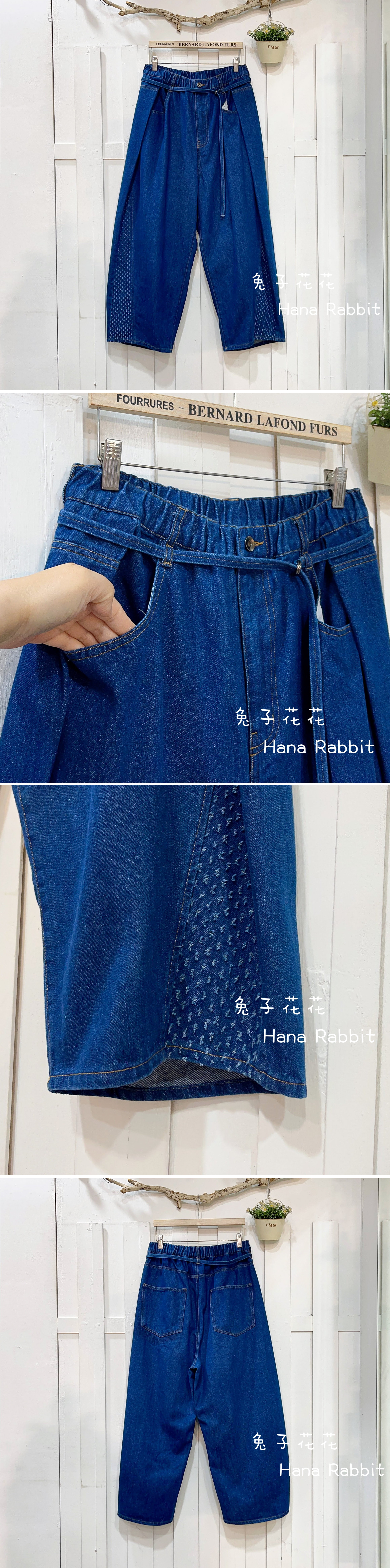 新色到❤❤WE家彩繩丹寧闊腿寛褲裙 15603