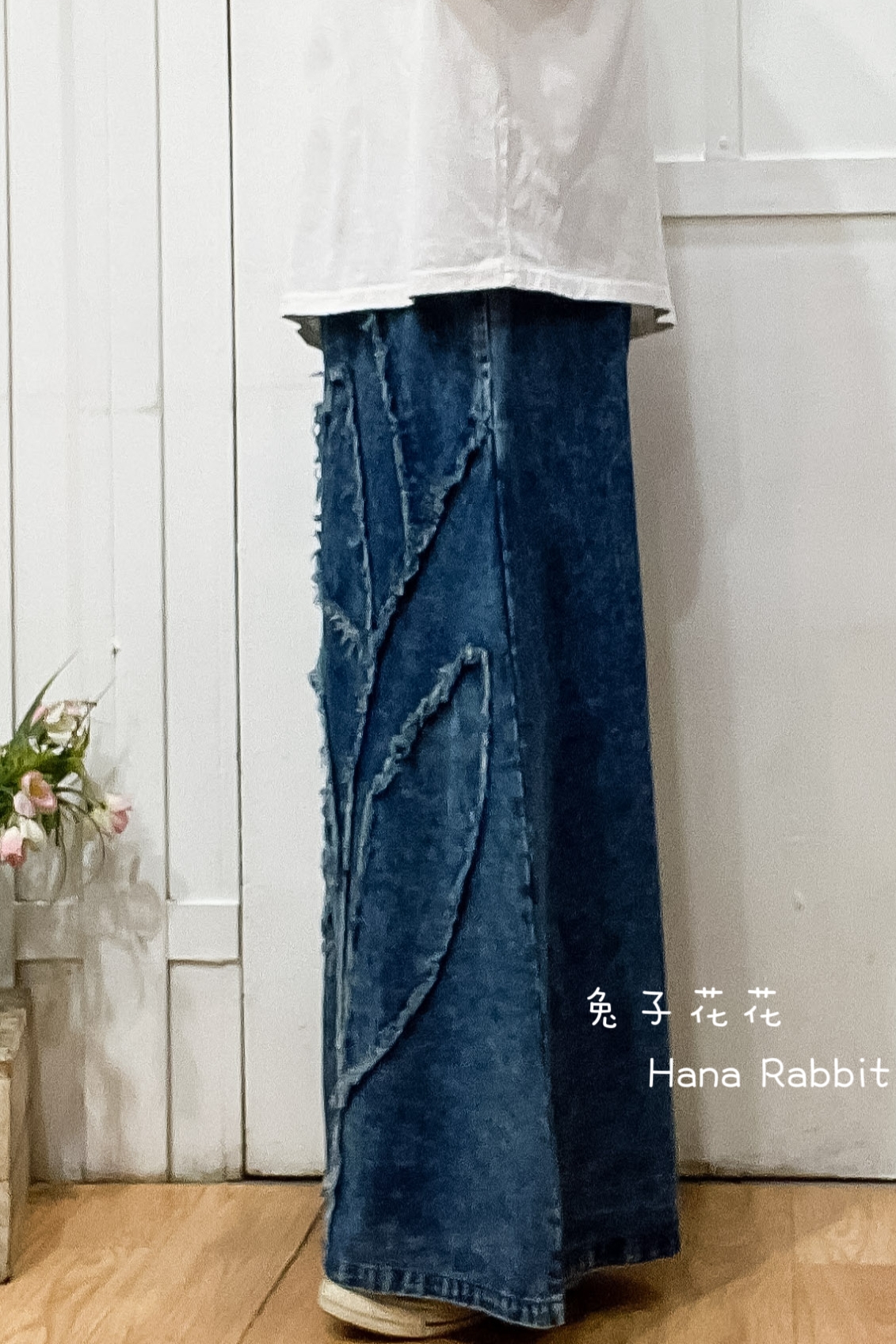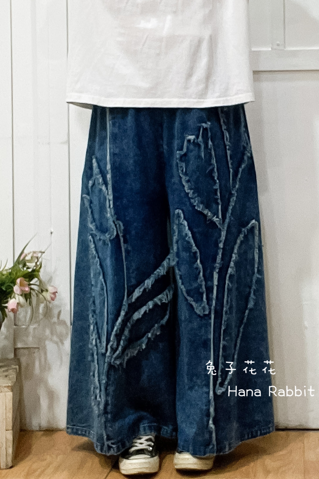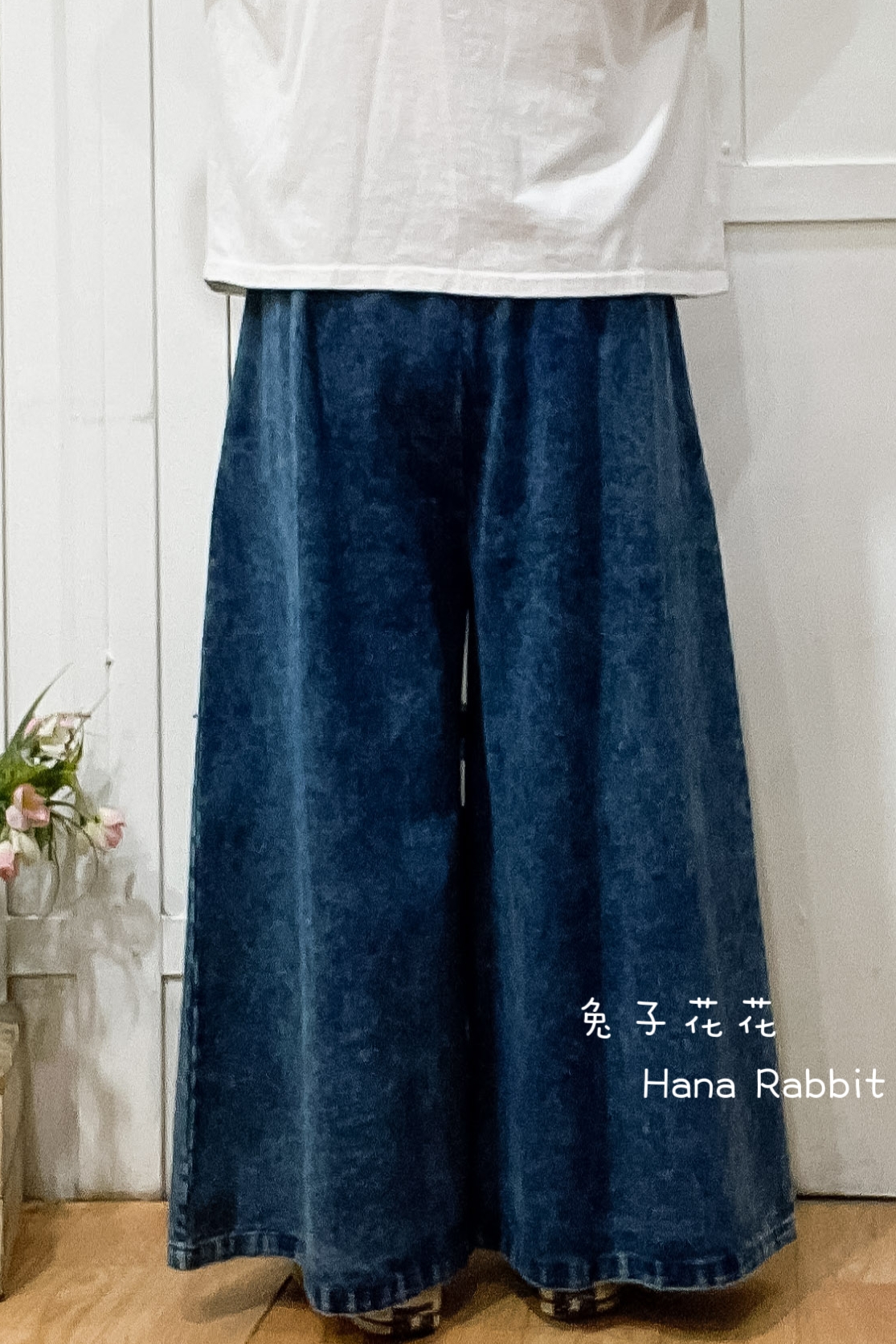 日系丹寧抽鬚闊腿寛褲裙 16360