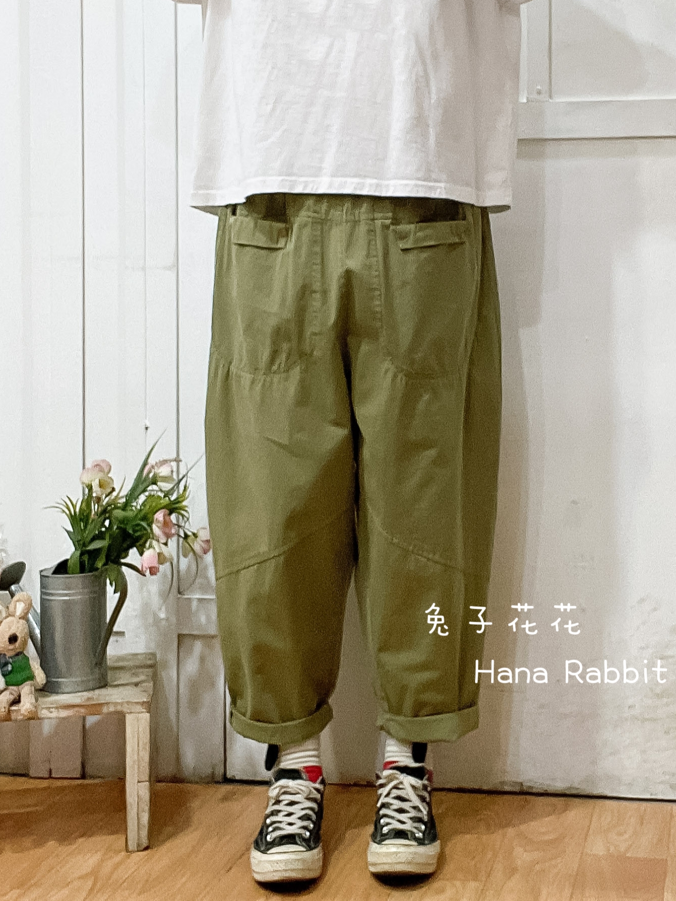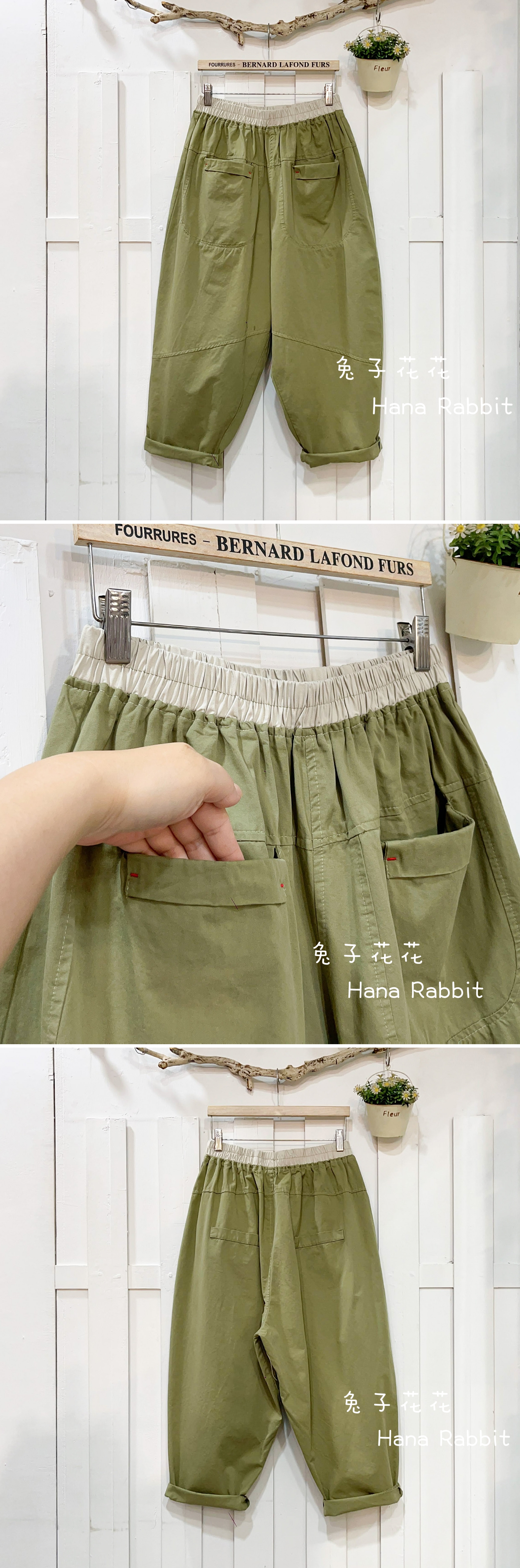 WE家水洗大花朵九分造型褲(綠) 17706