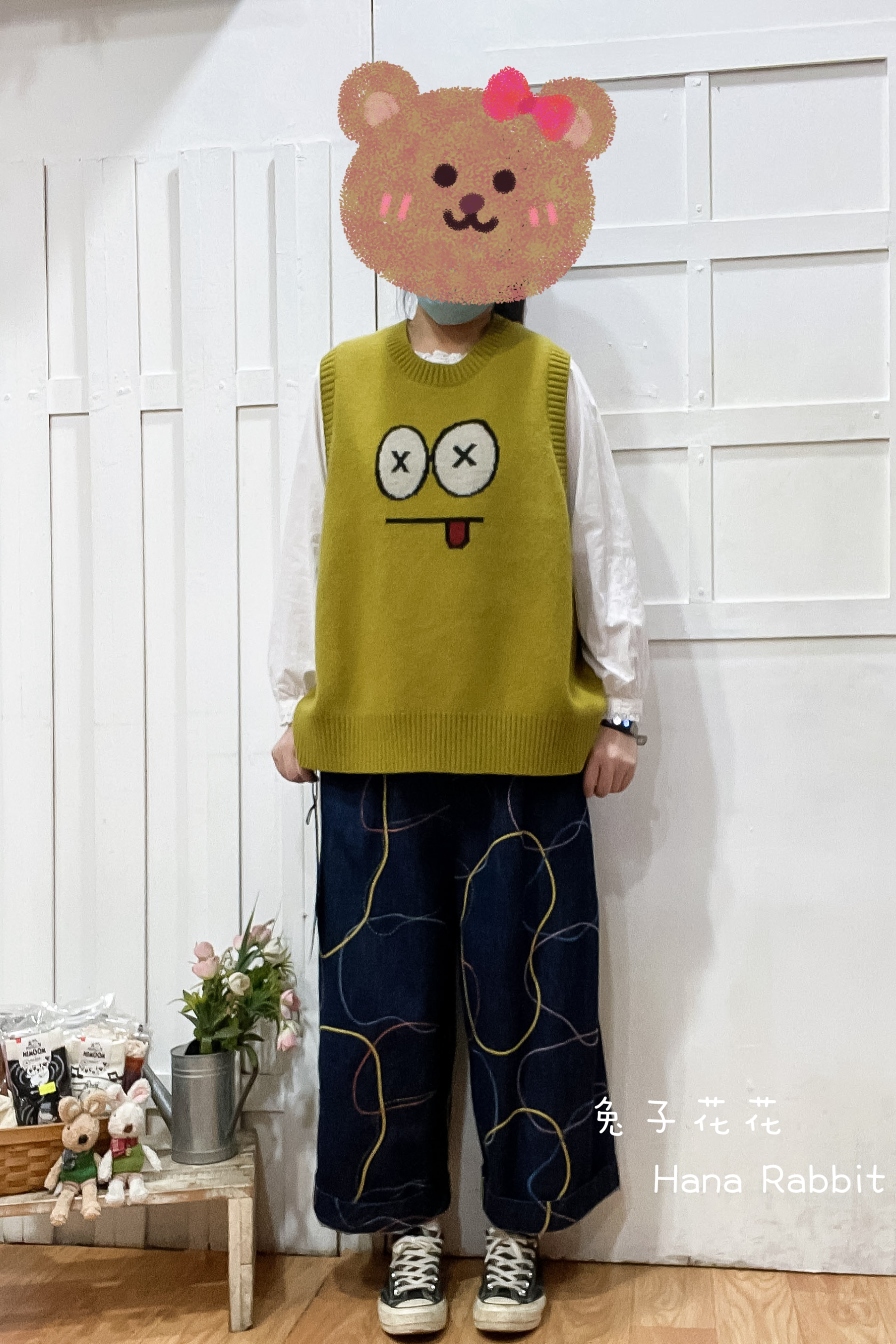 日系卡通減齡針織背心(芥黃) 21118
