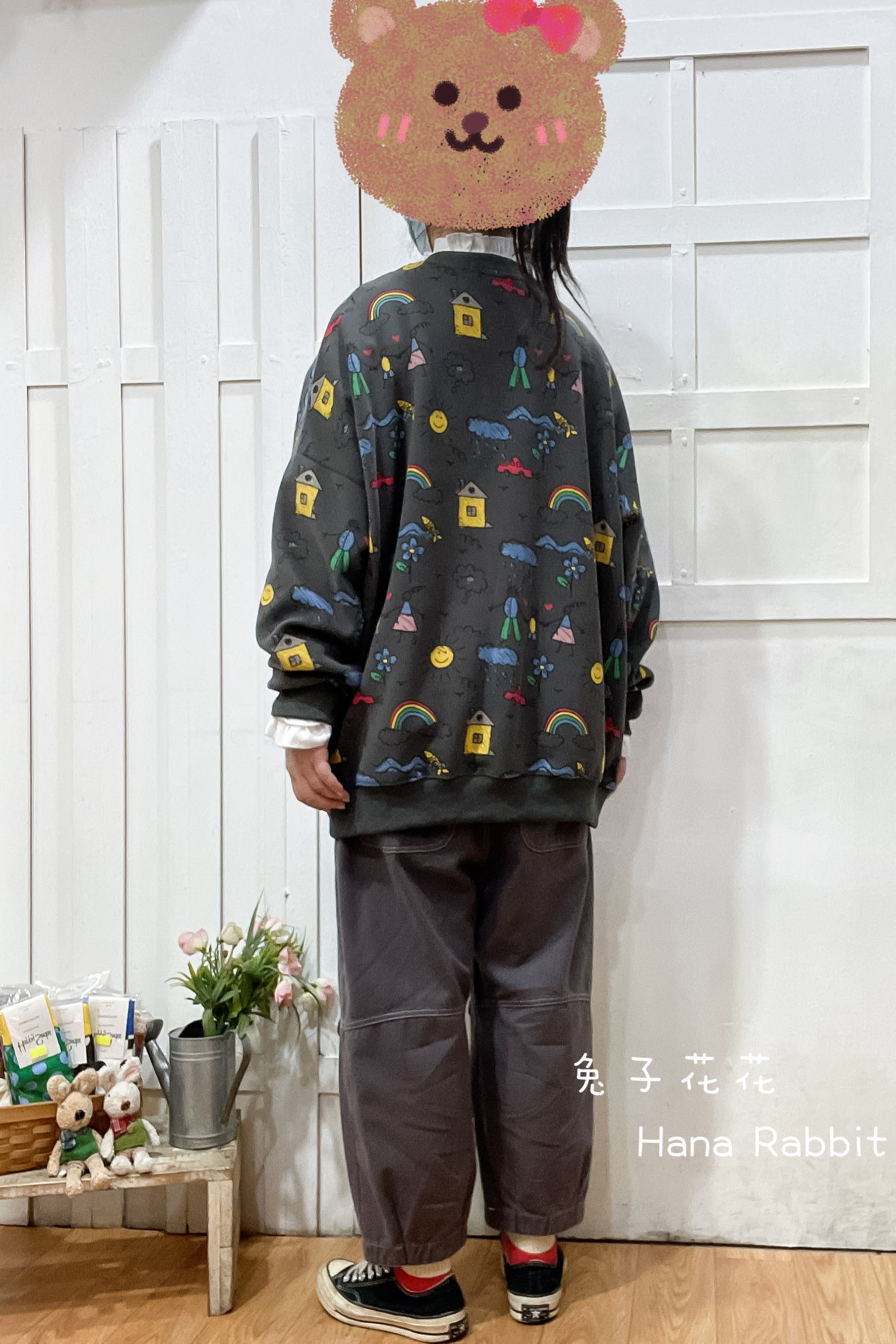 日系可愛感塗鴨大學T 21030