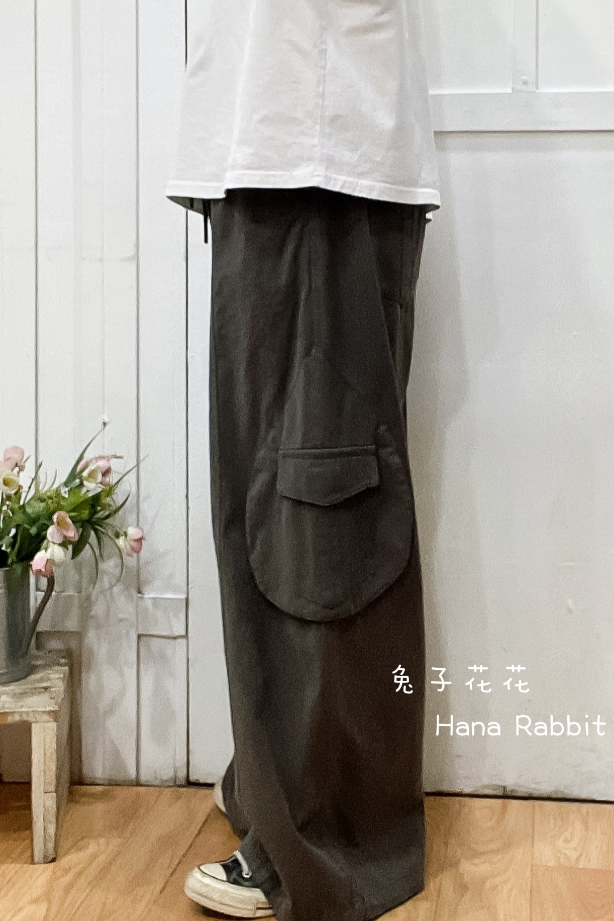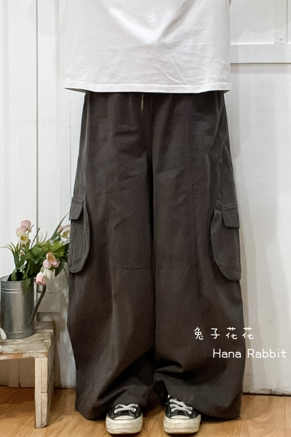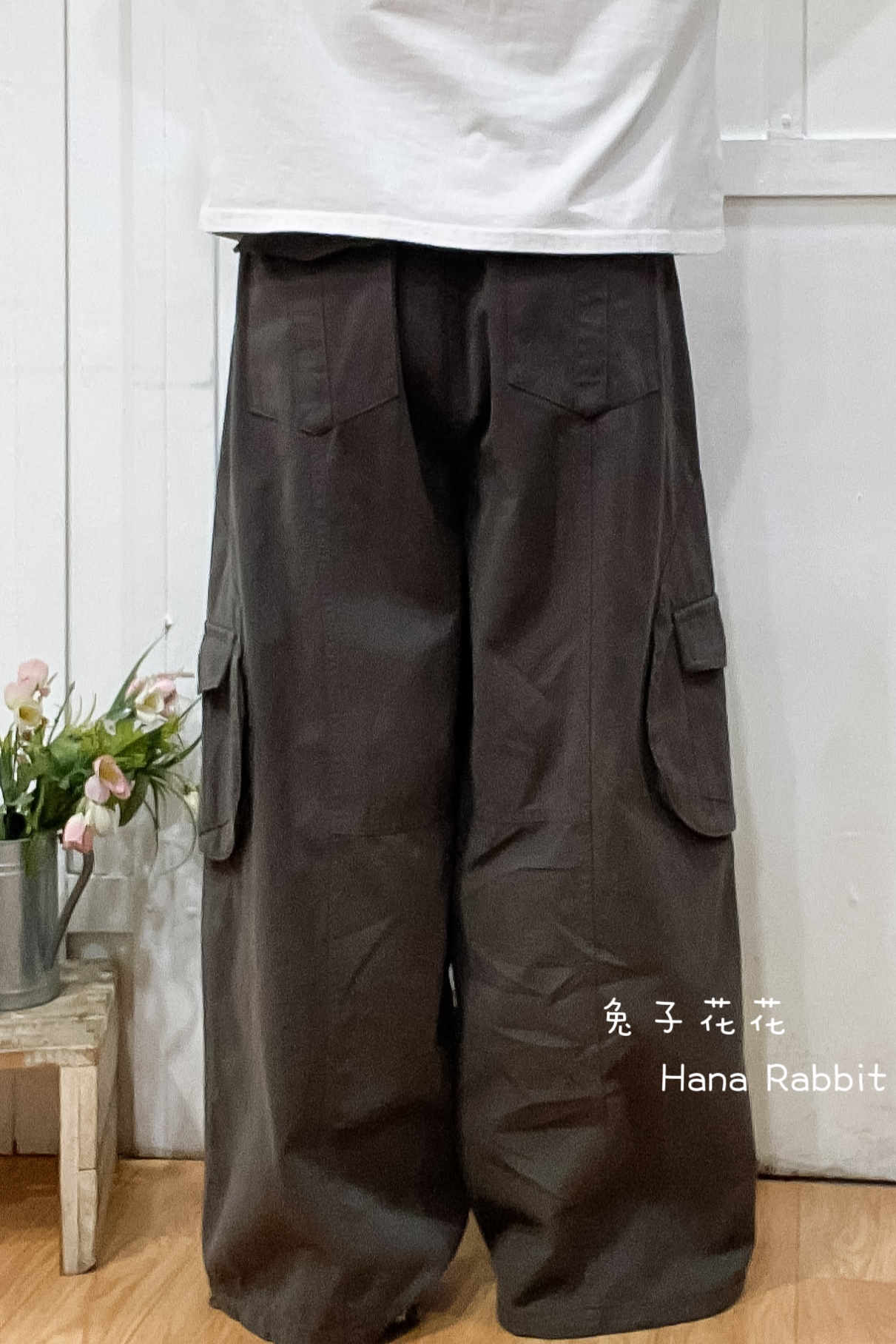 日系可縮腳內磨毛落地工裝造型褲(灰) 16969