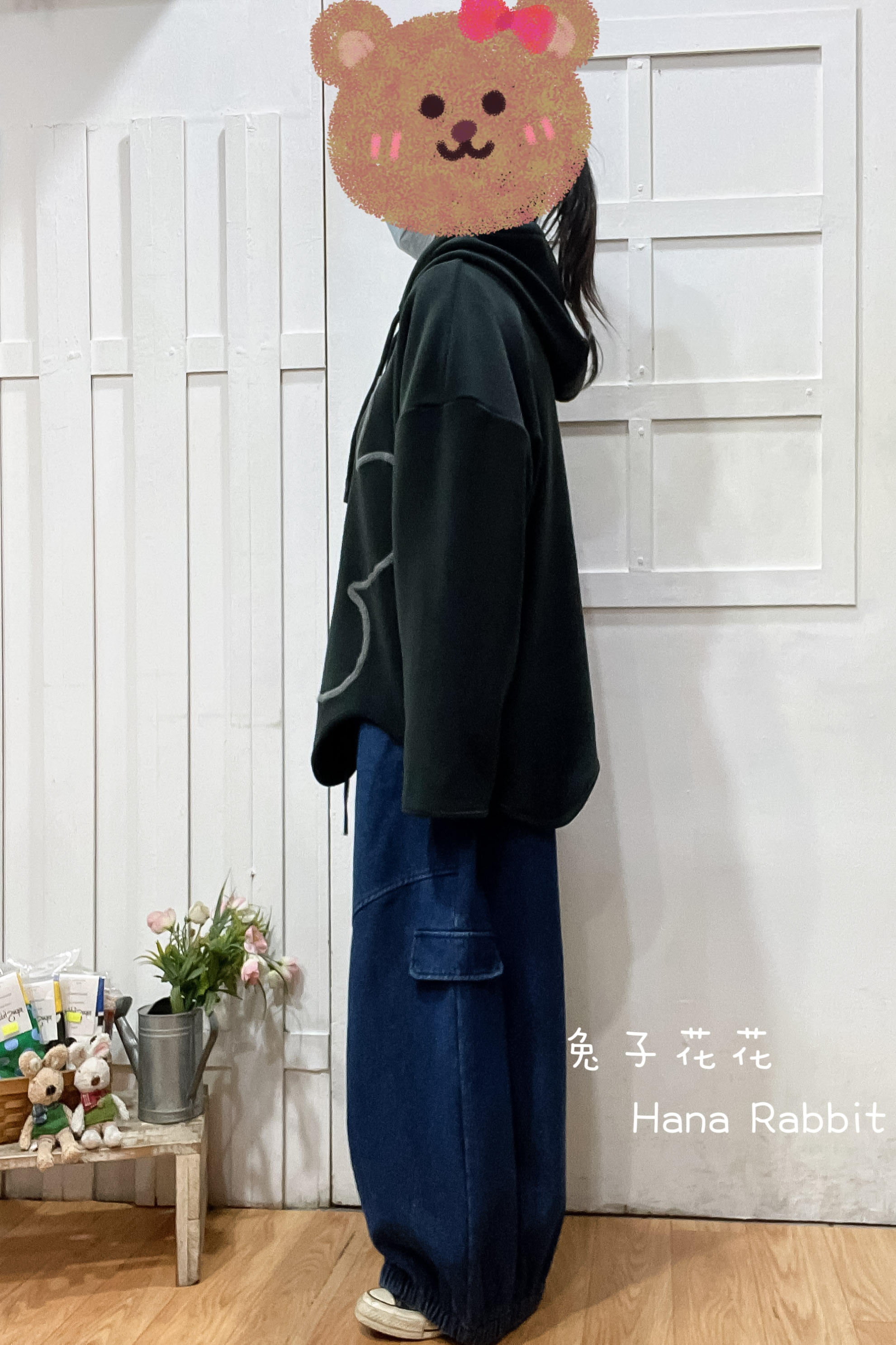 日系大花朵連帽波浪德絨上衣(黑) 21118