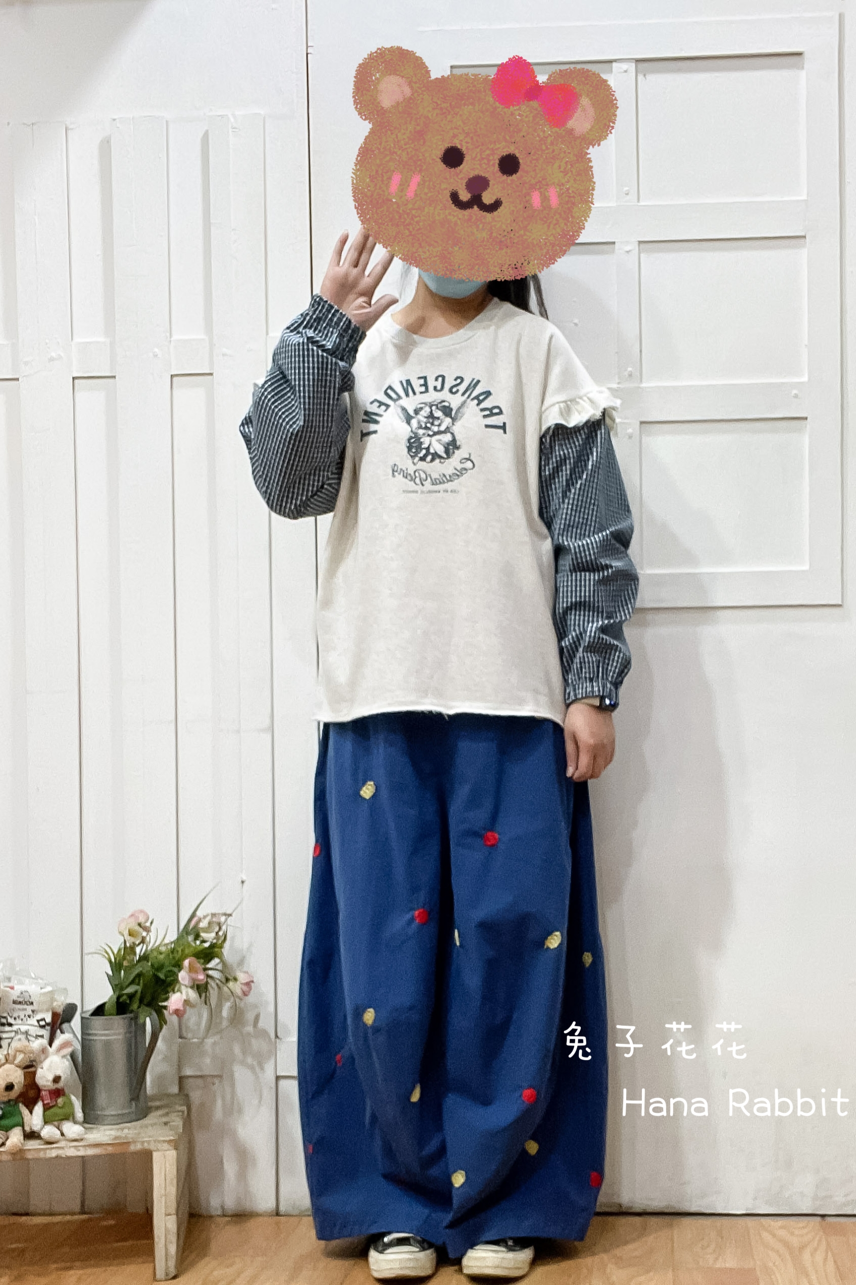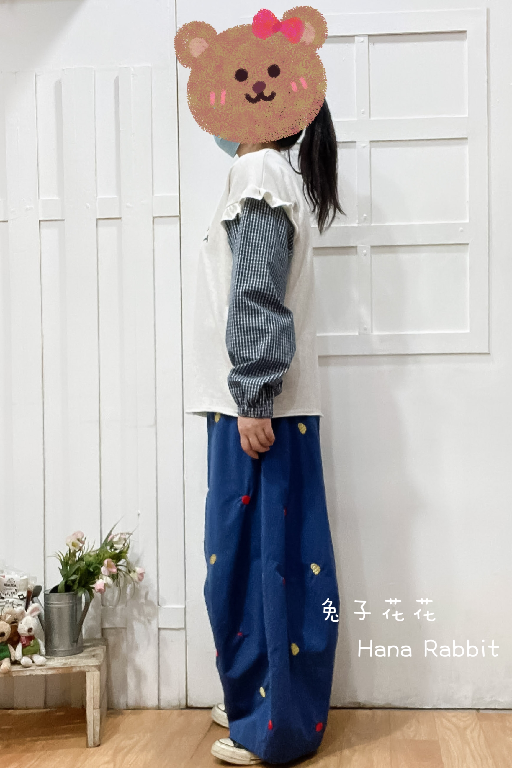 刺繡爆炸小女孩撞色重磅棉上衣(藍) 21102