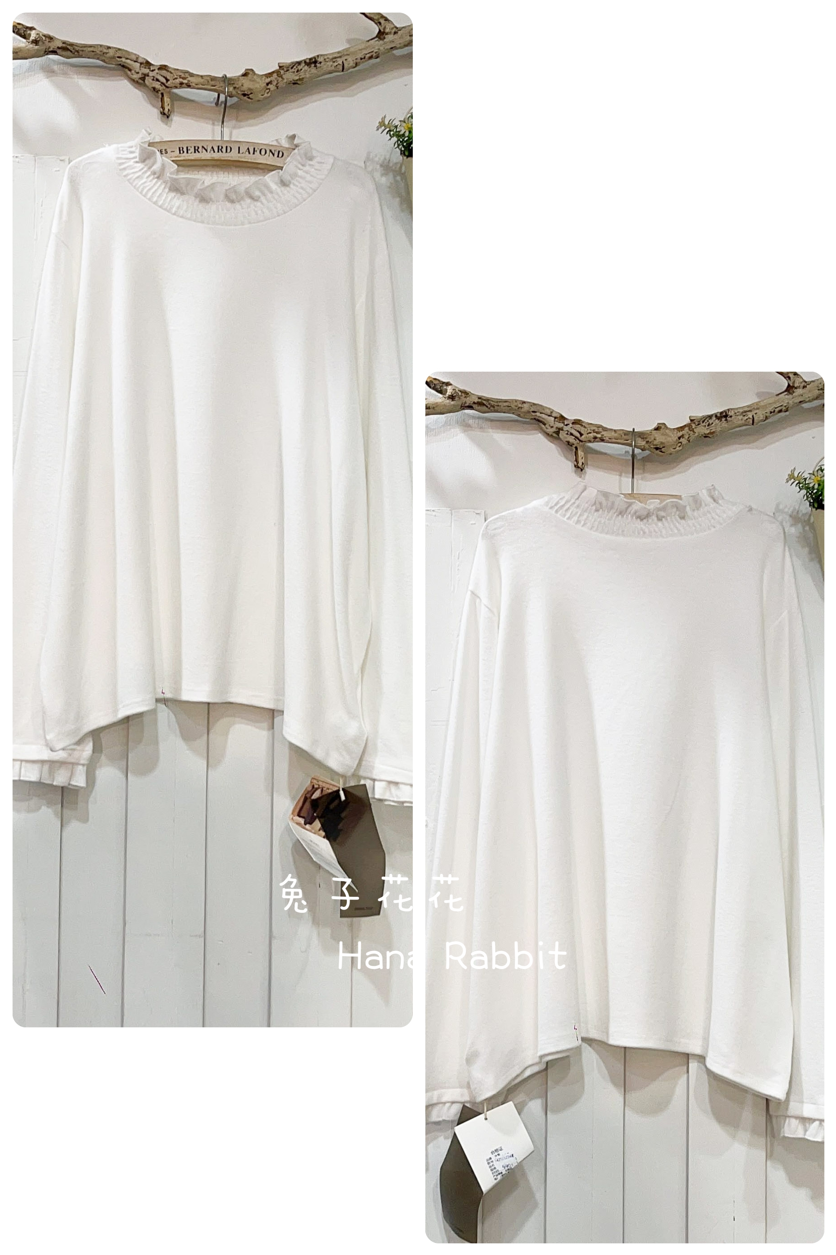 日系德絨木耳領簡約上衣(白) 14251
