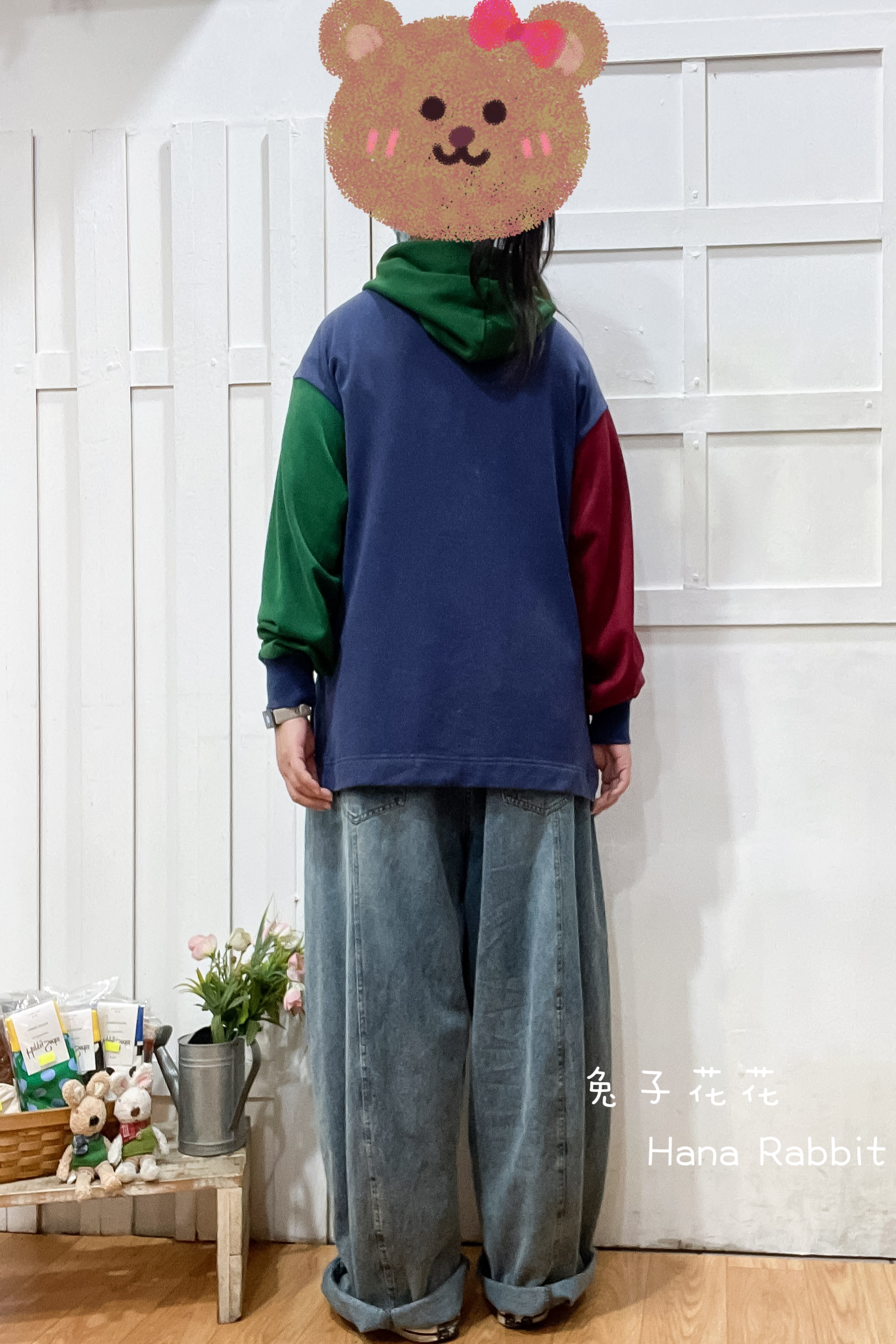 日系撞色連帽毛圈棉上衣 19253