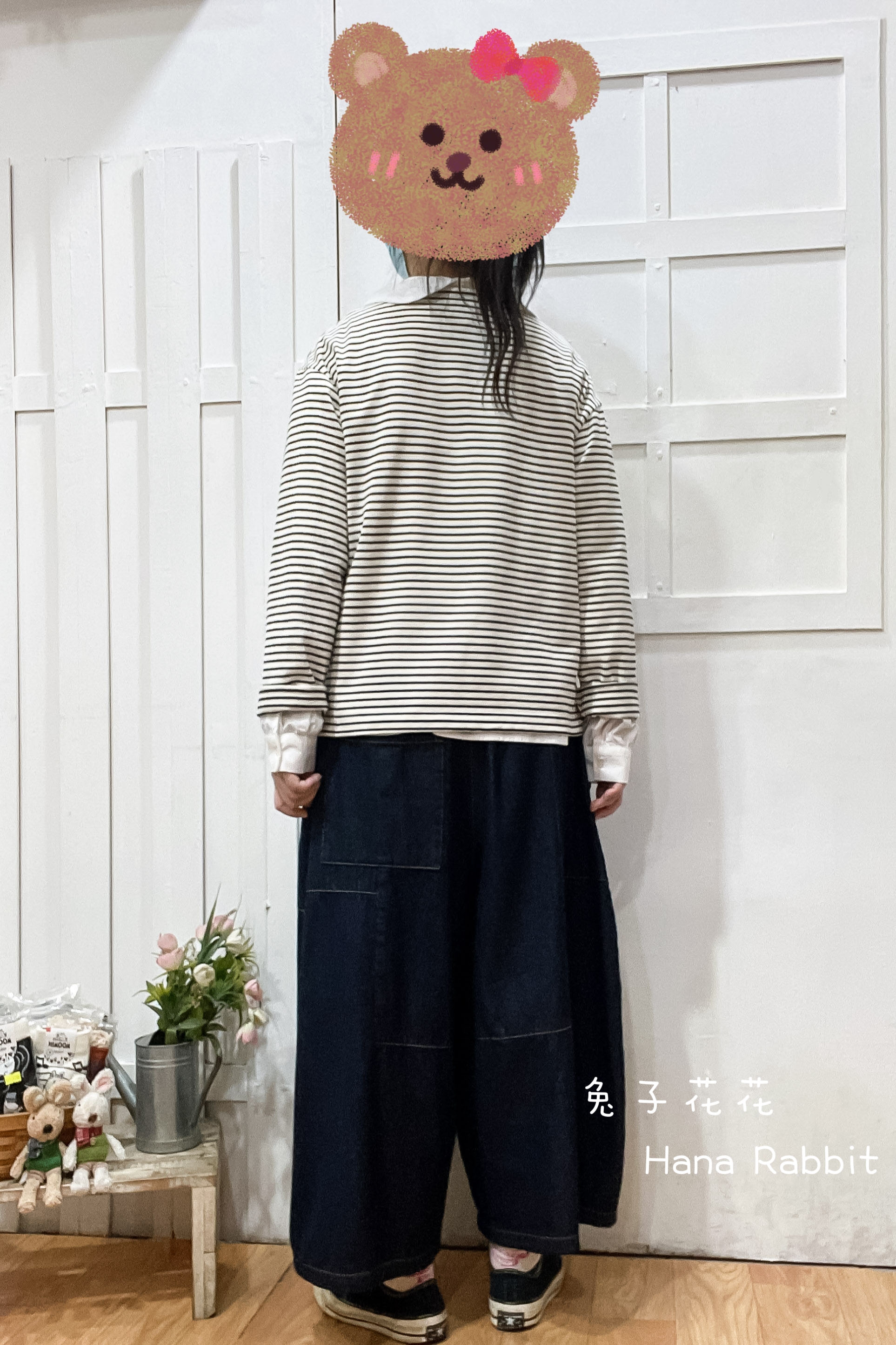 WE家2穿條紋寛袖棉質上衣(粉) 14697