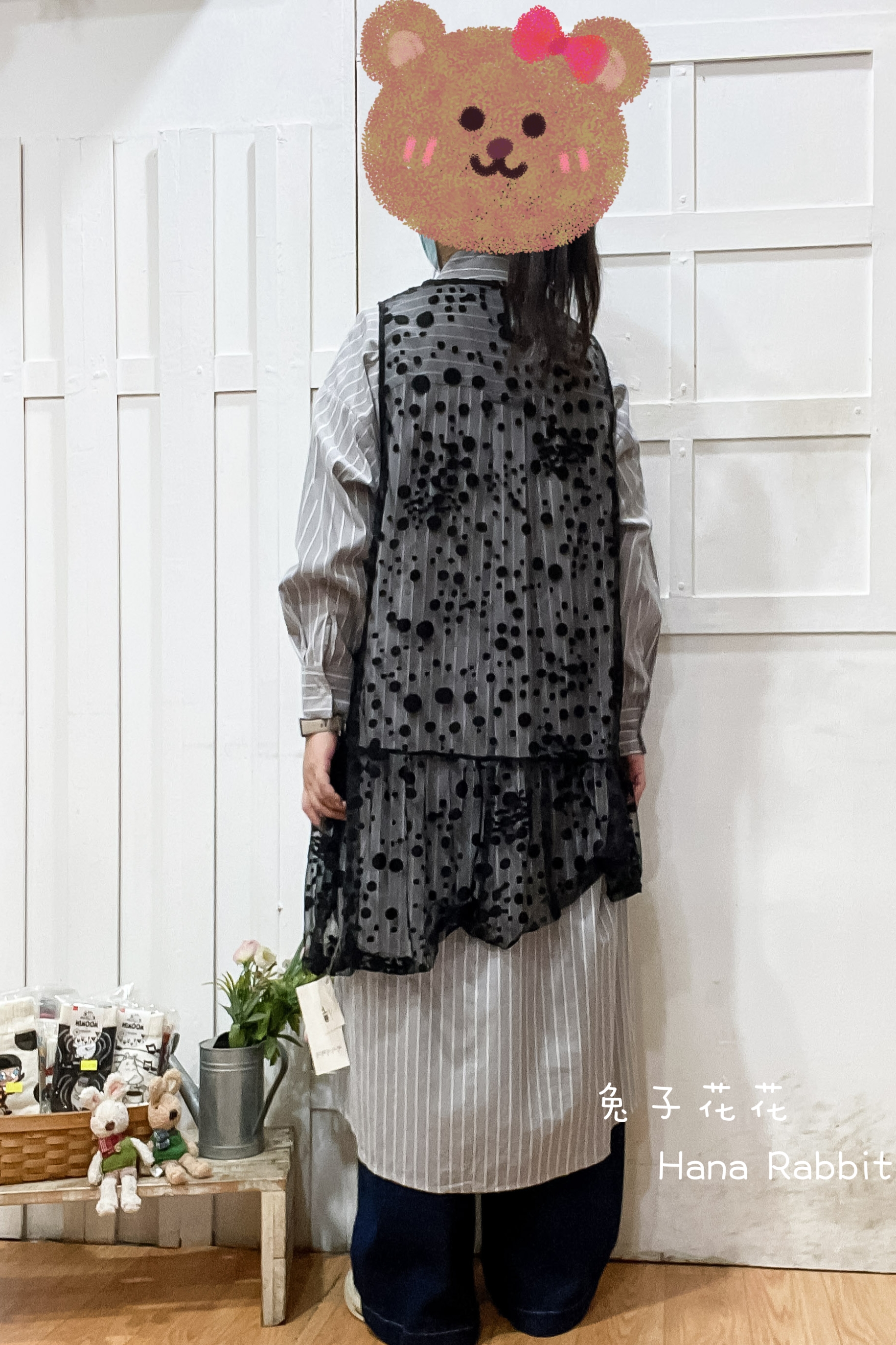 日系波點透膚不規則造型背心(黑) 14332