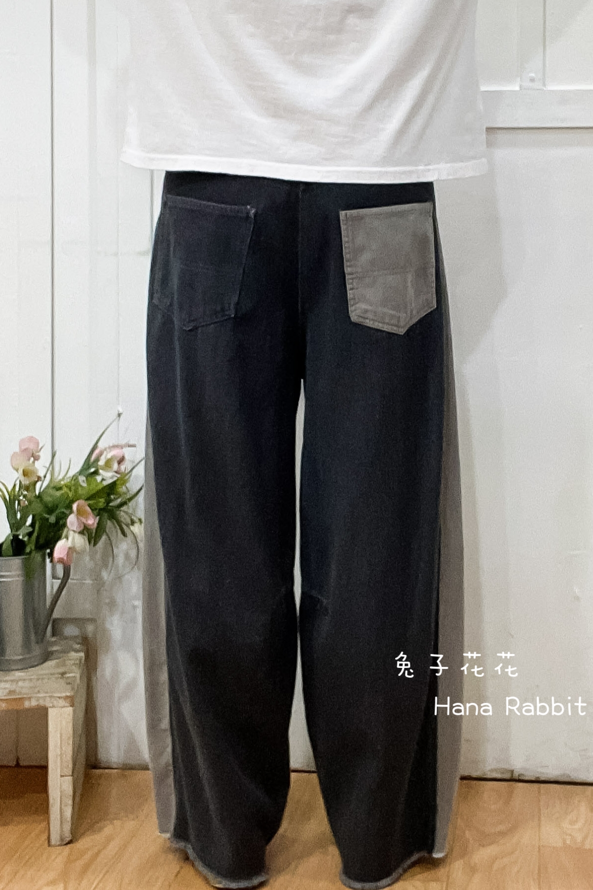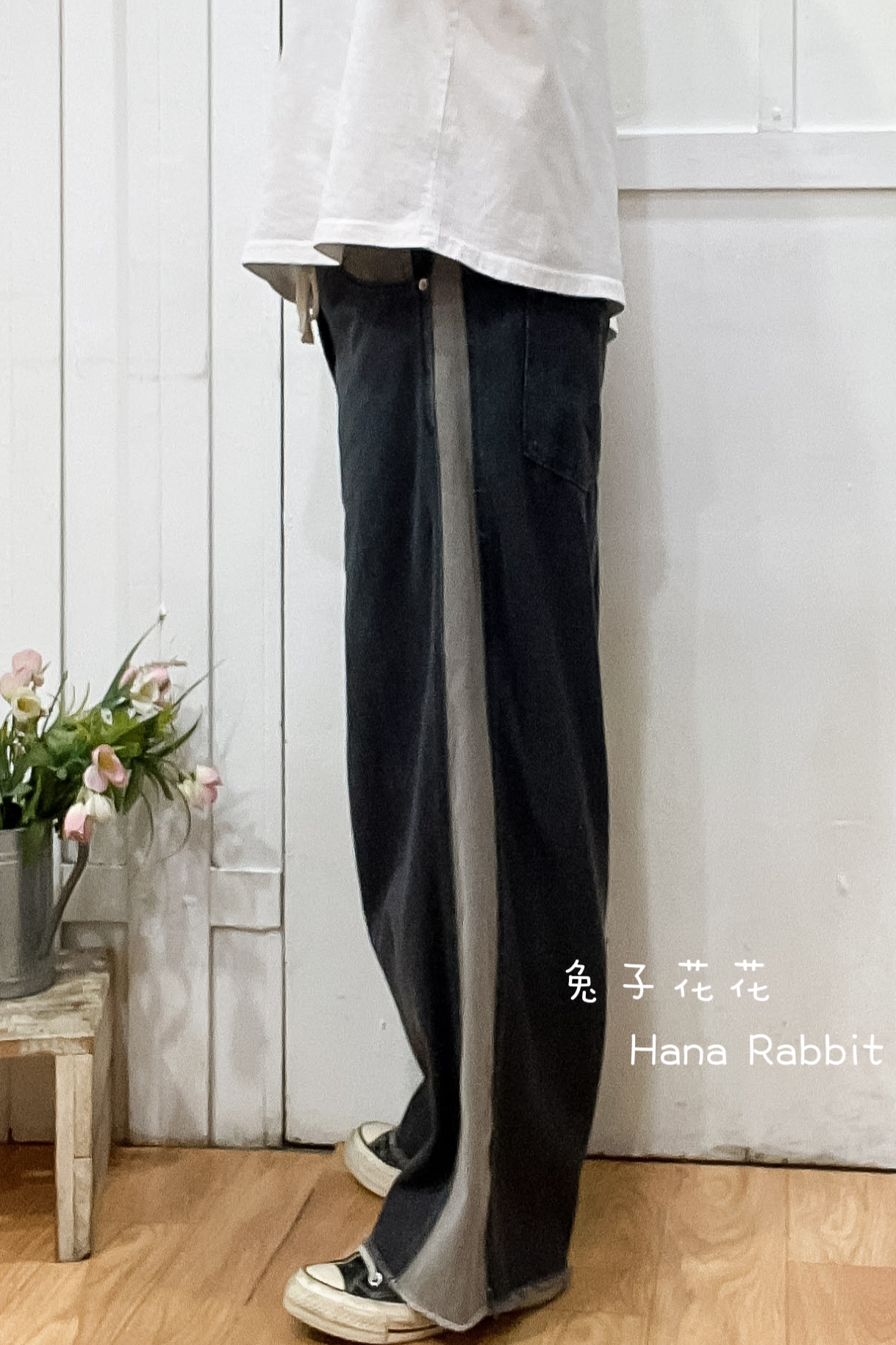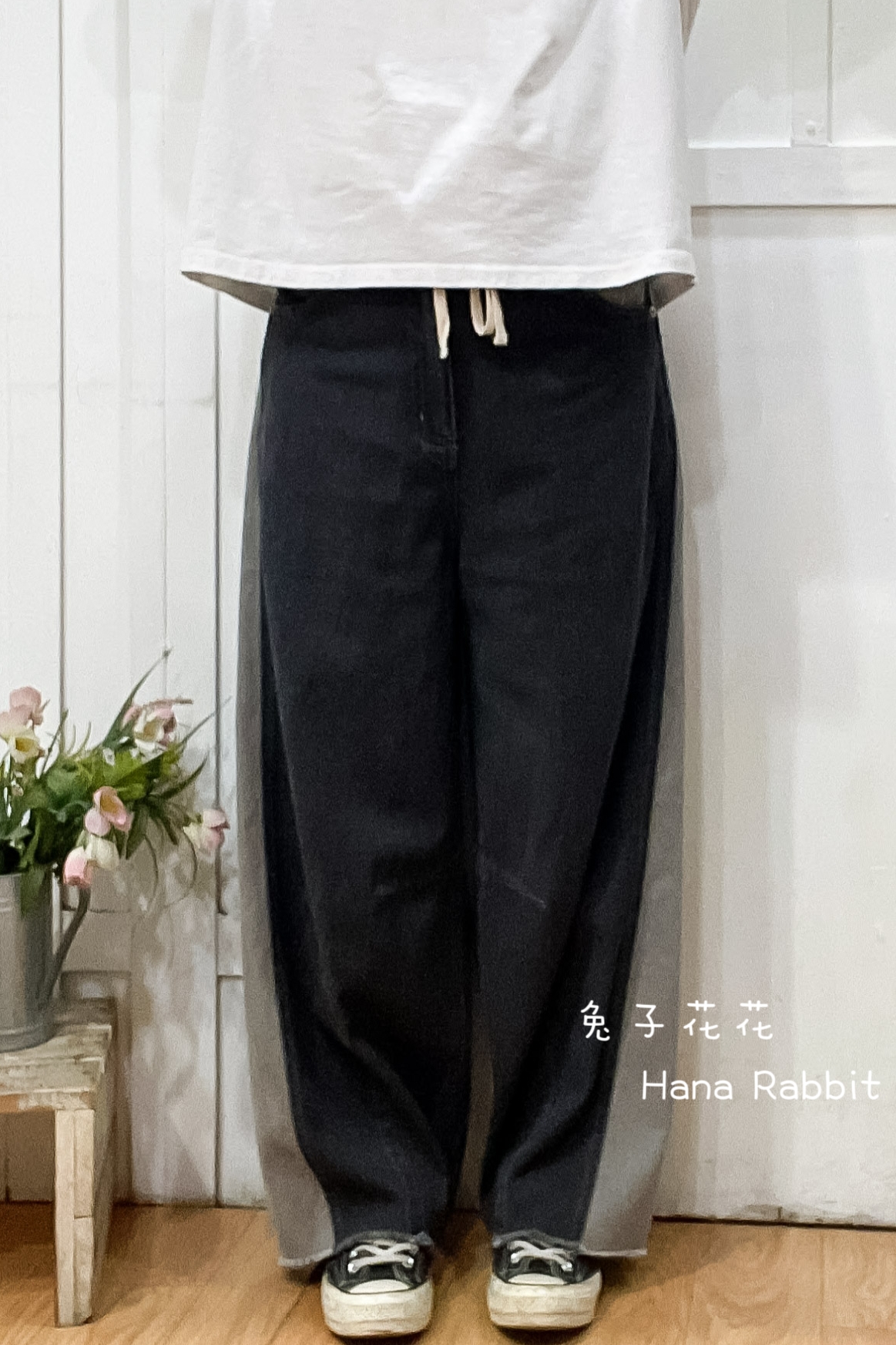 WE家寛鬆荷葉下擺闊腿造型褲(灰) 17605