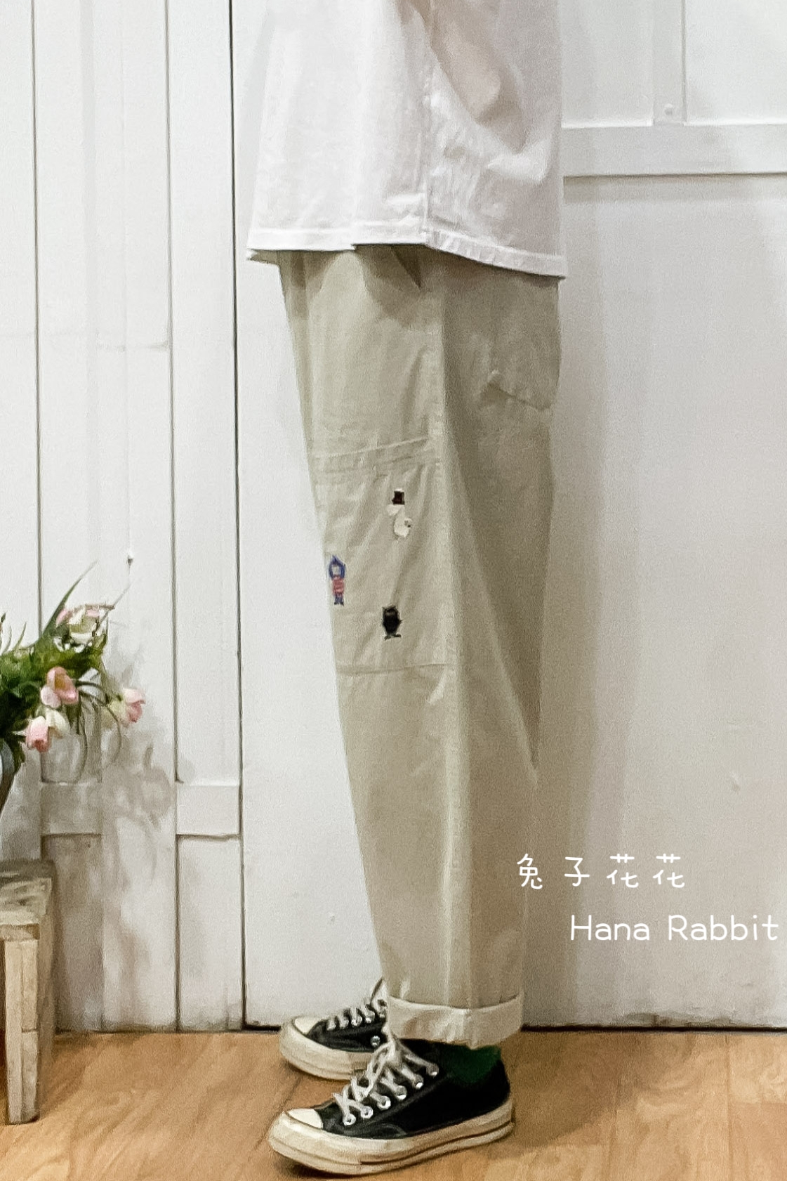 日系童趣小口袋棉麻造型褲(杏) 13024
