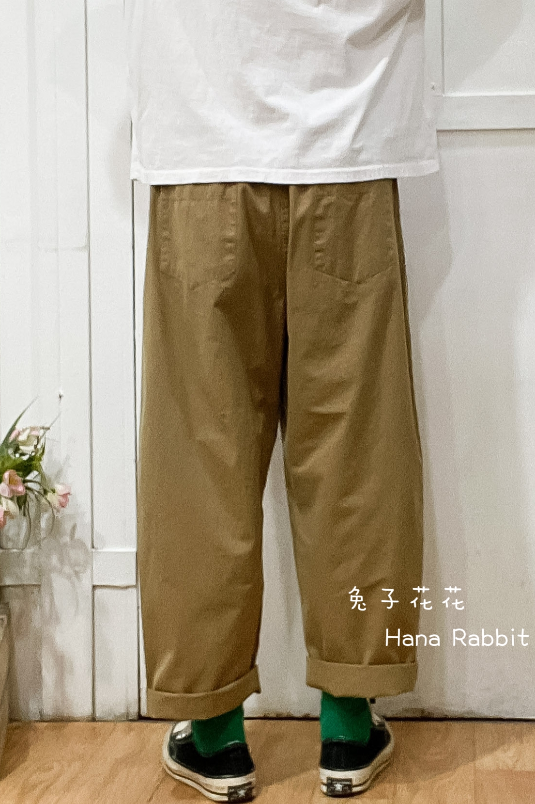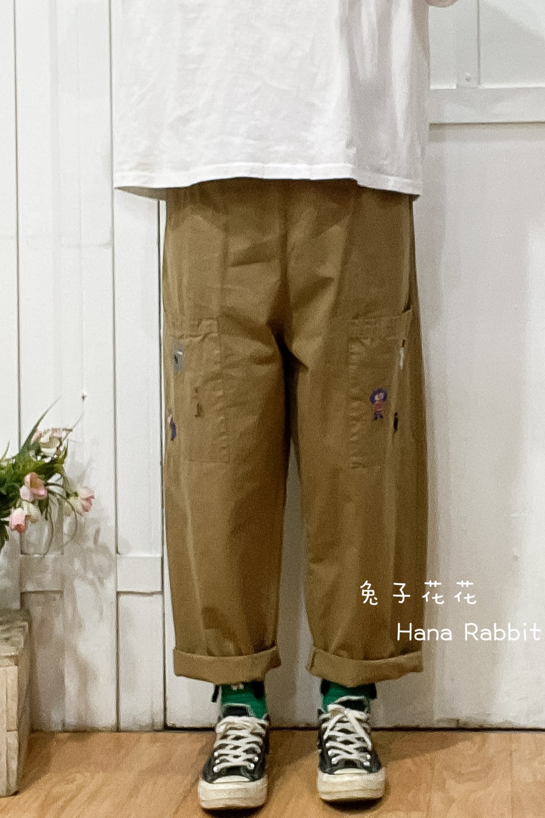日系童趣小口袋棉麻造型褲(駝) 13024