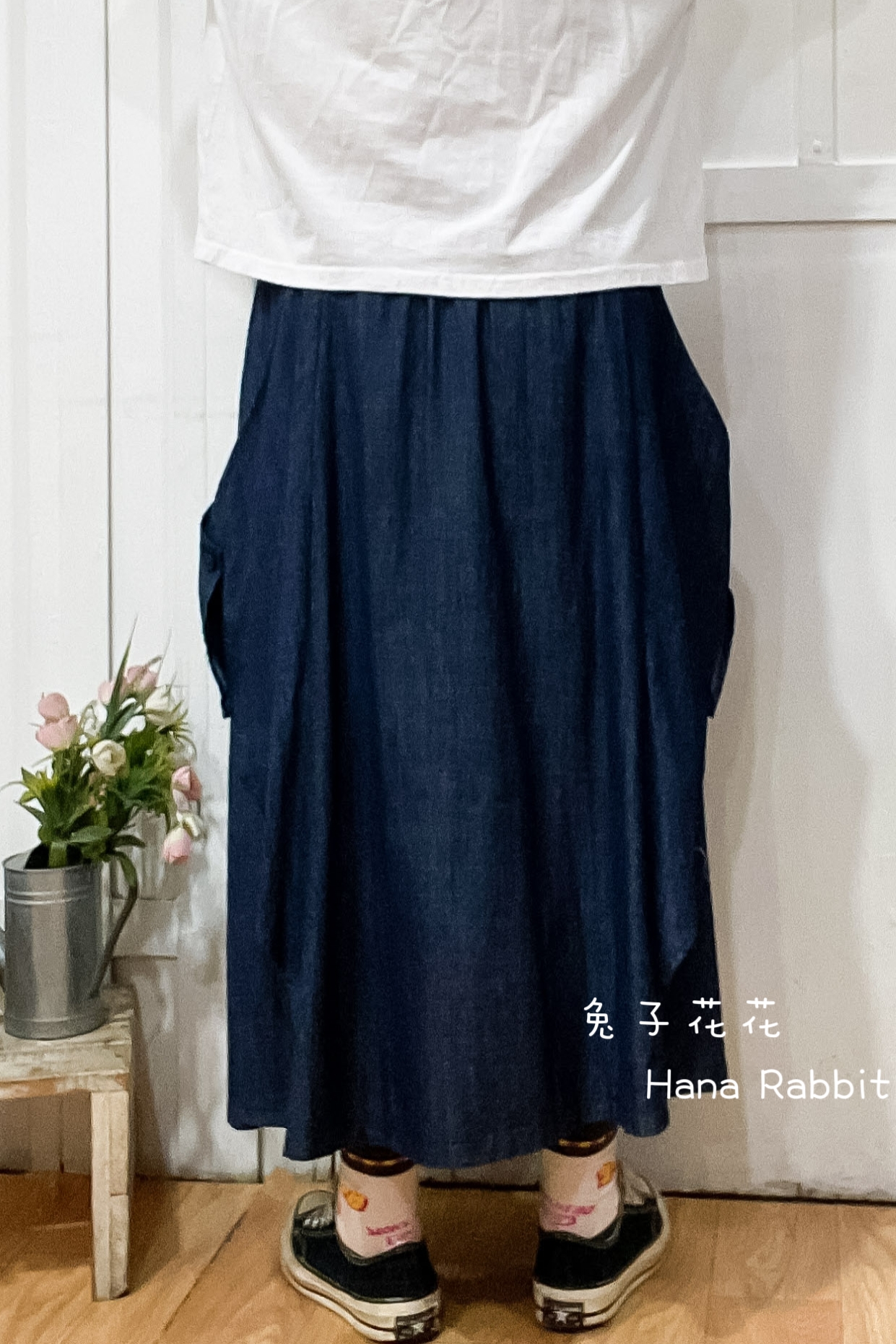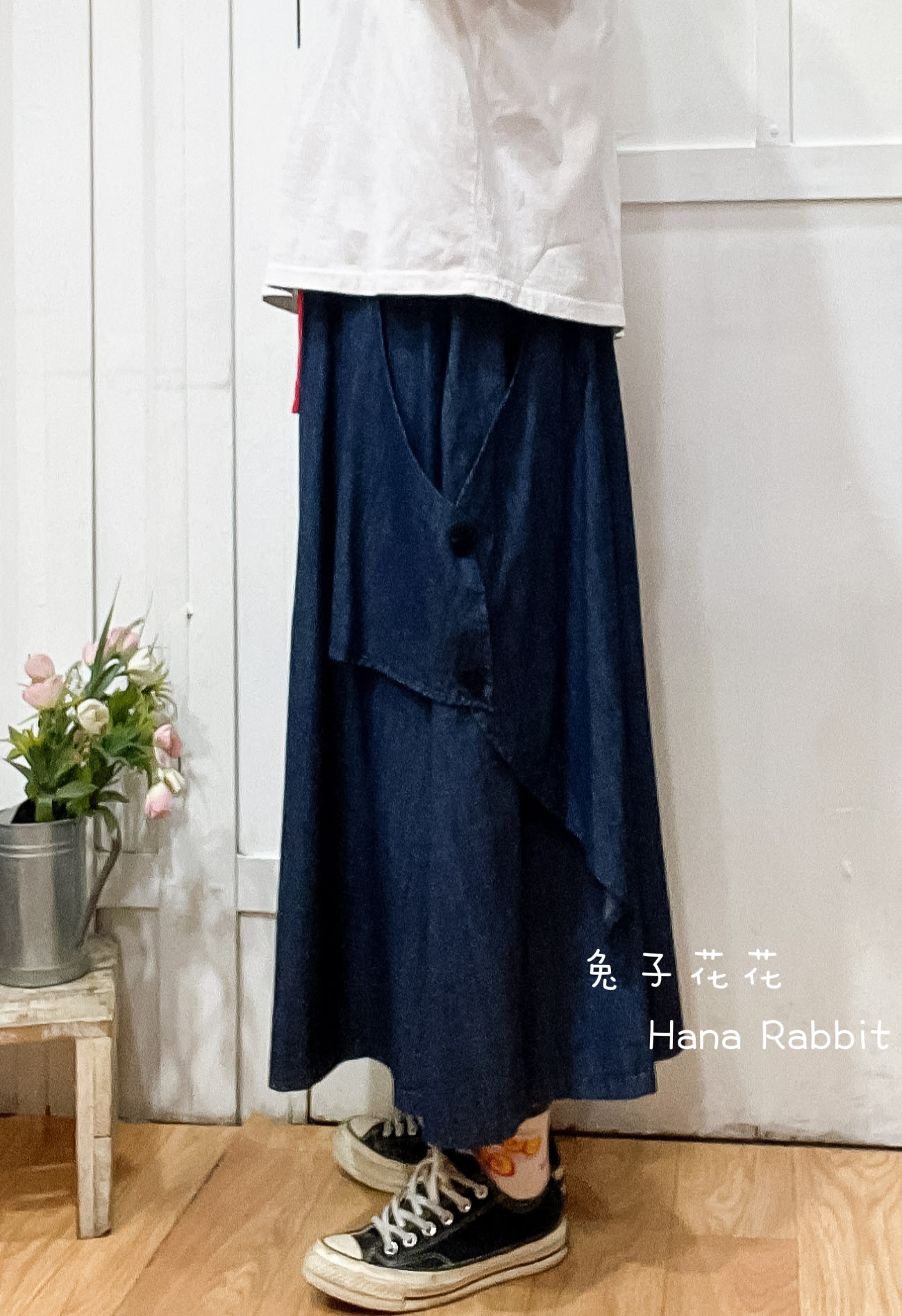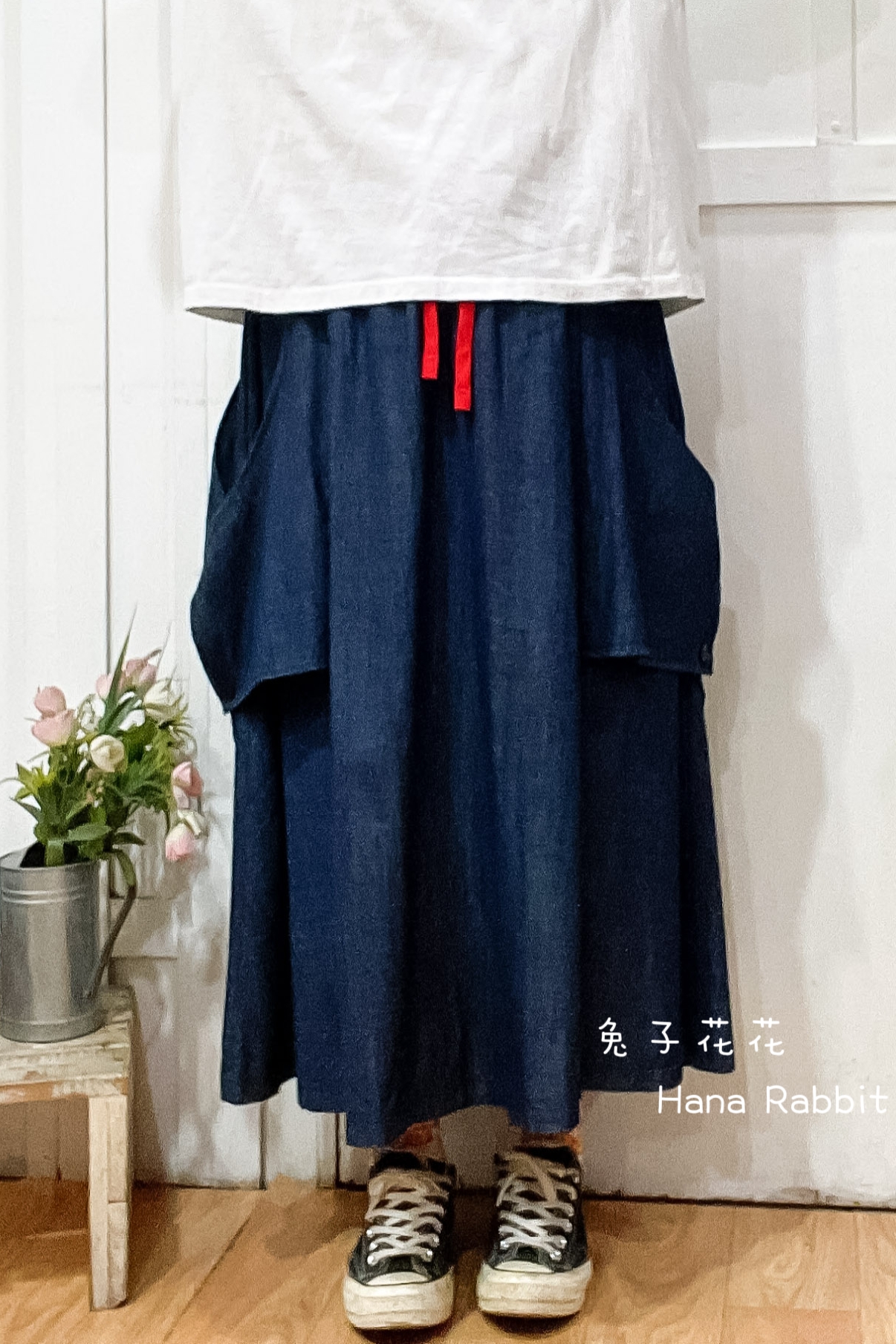 WE家彩繩丹寧闊腿寛褲裙 15603
