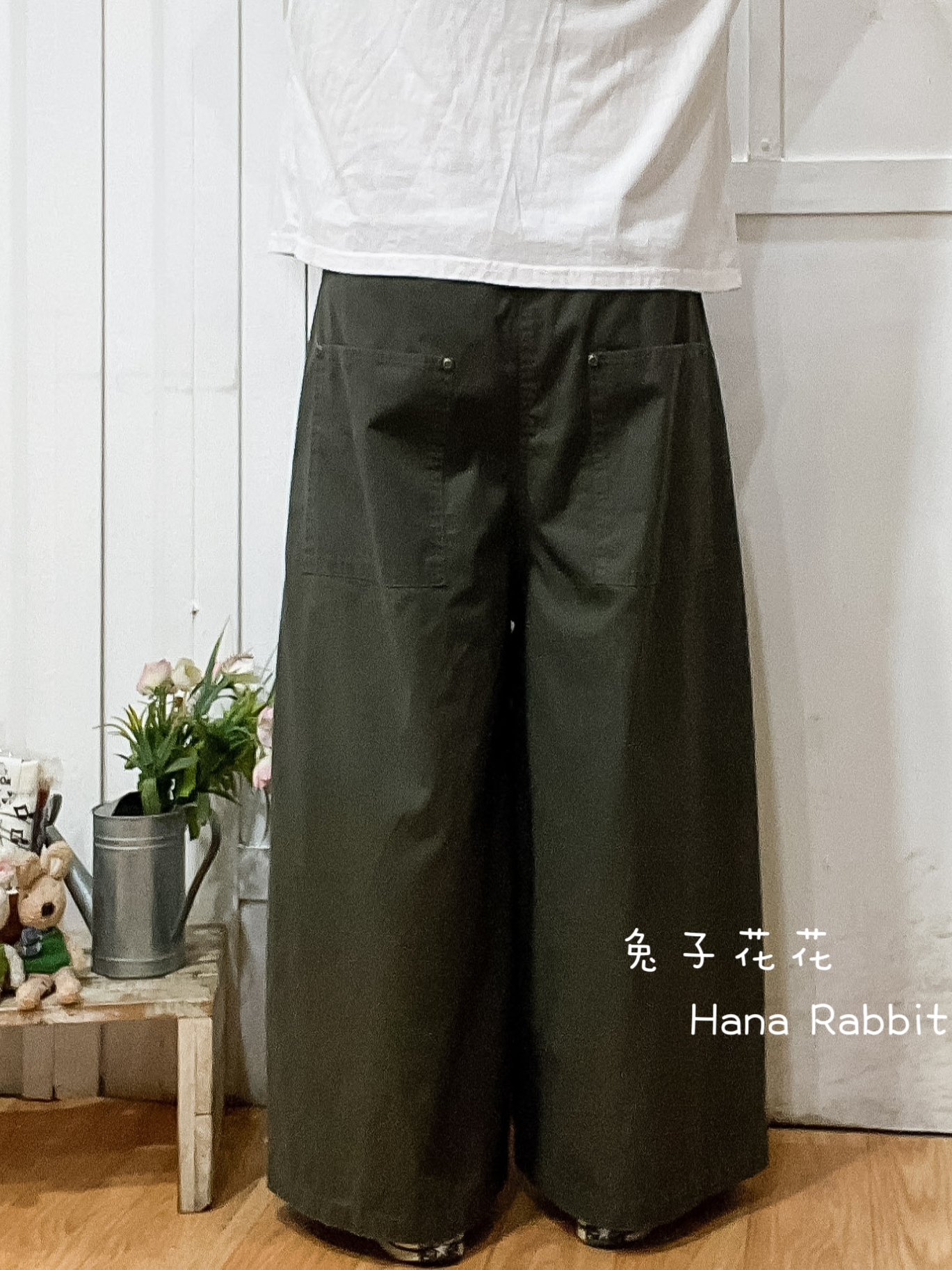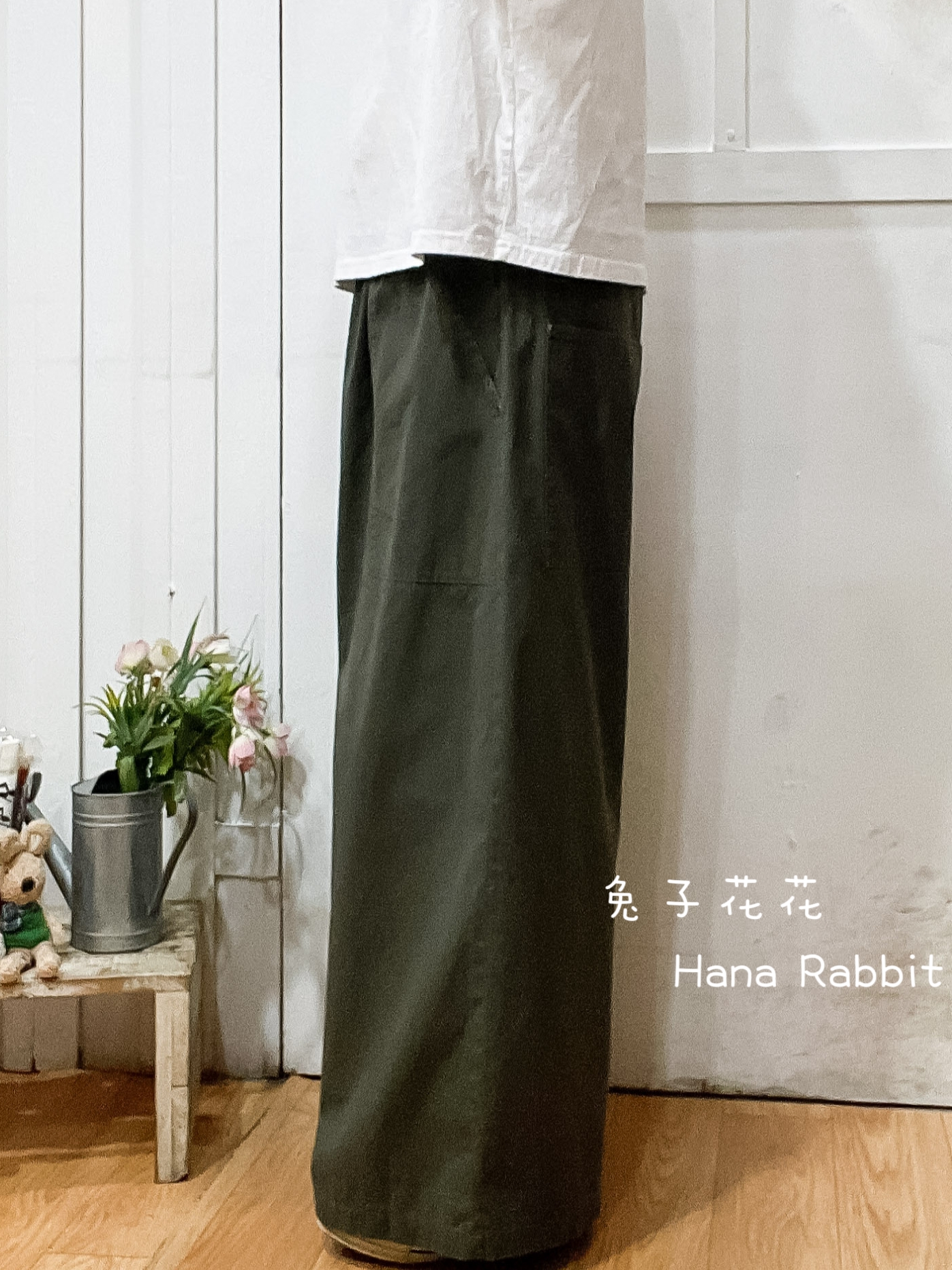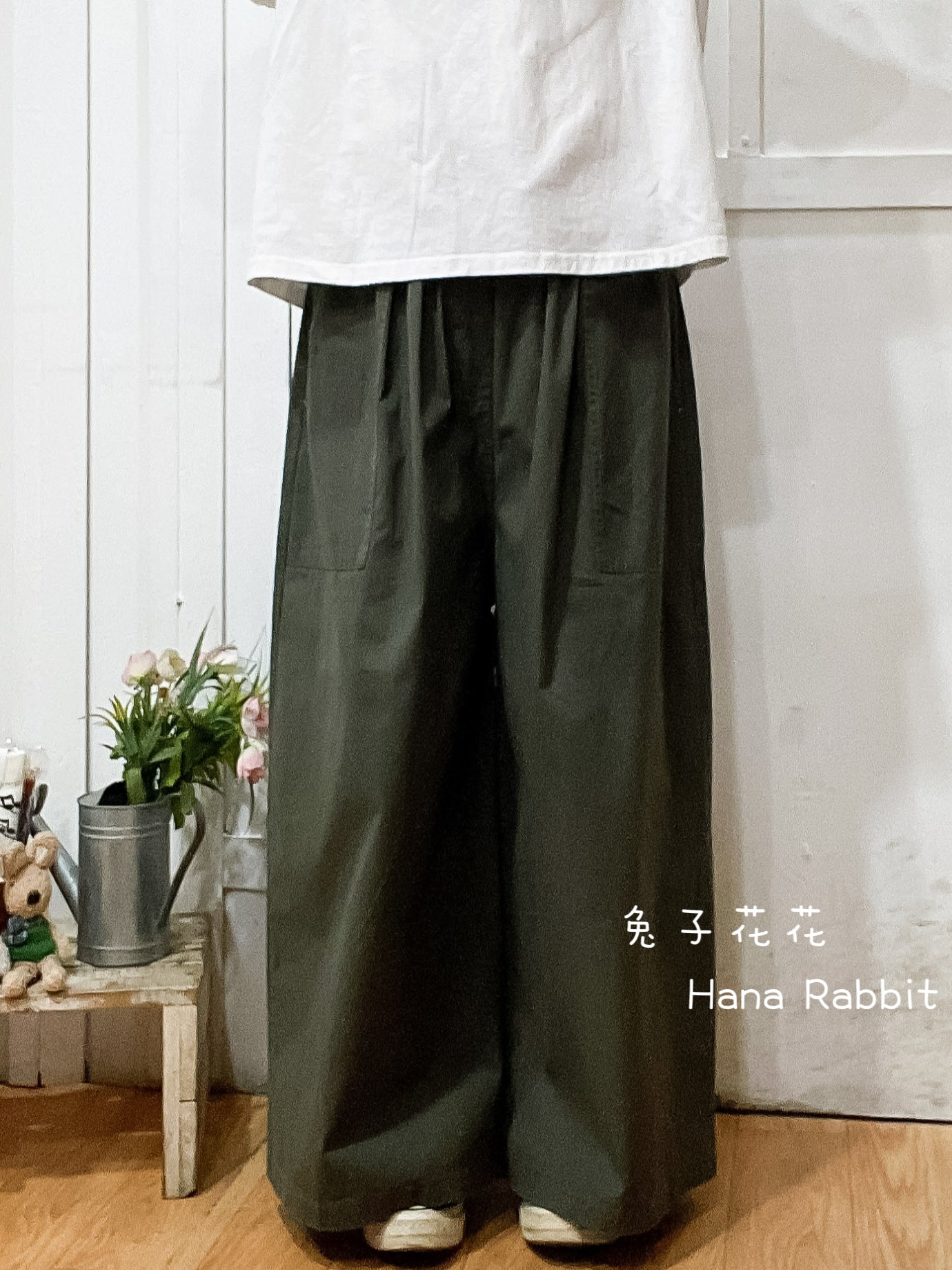 日系簡約彩繩闊腿寛褲(灰綠) 14413
