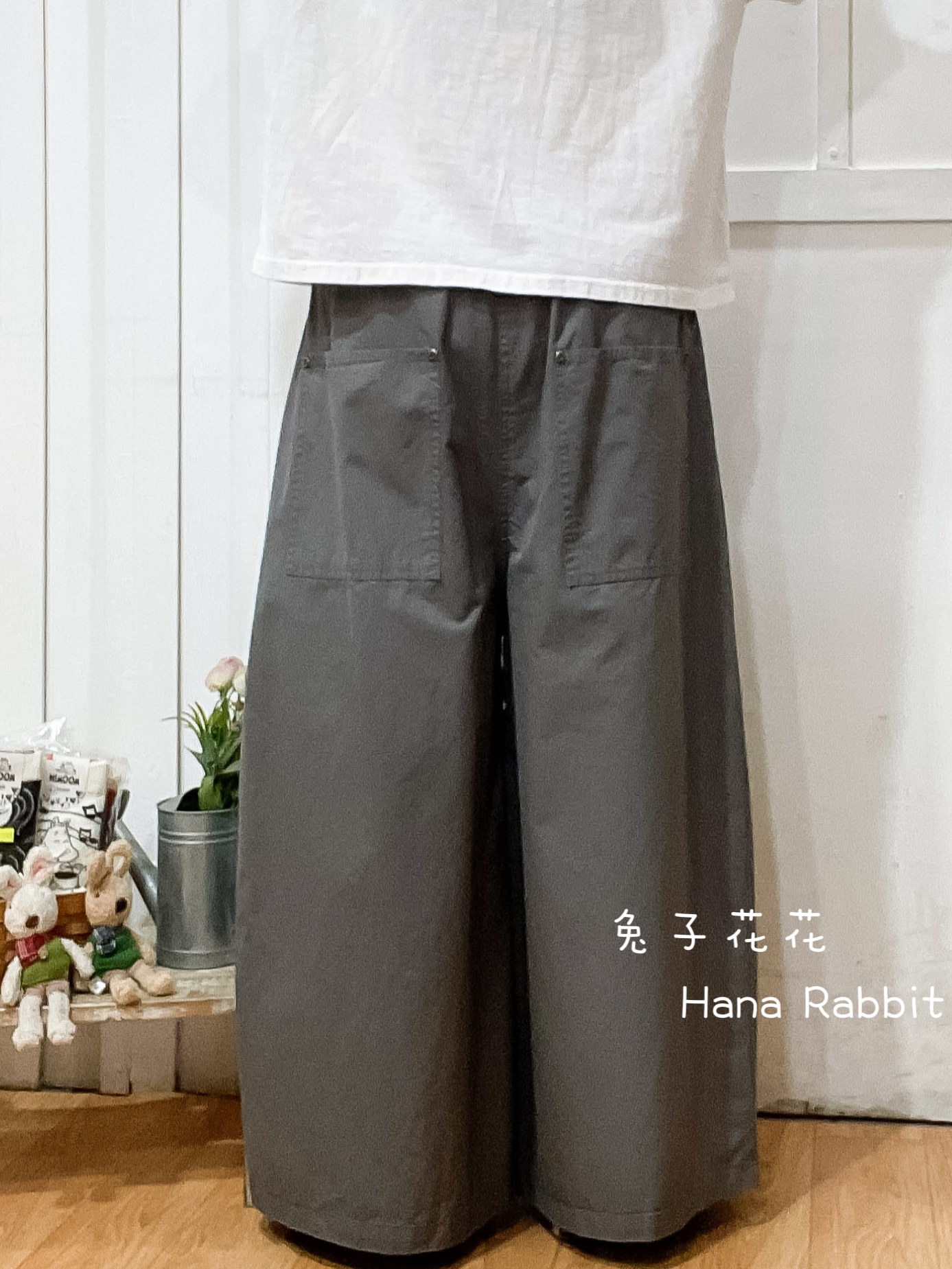 日系簡約彩繩闊腿寛褲(灰) 14413