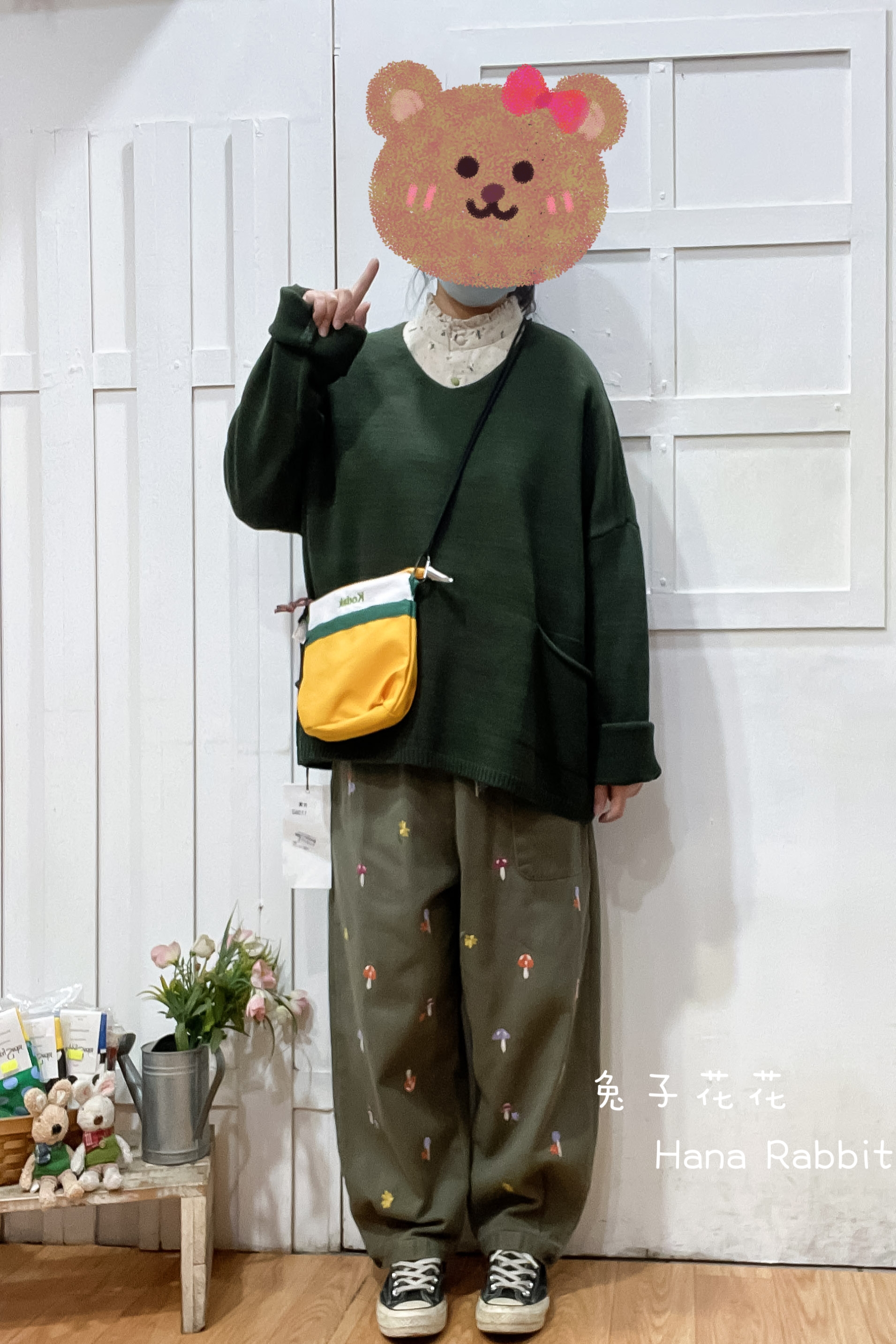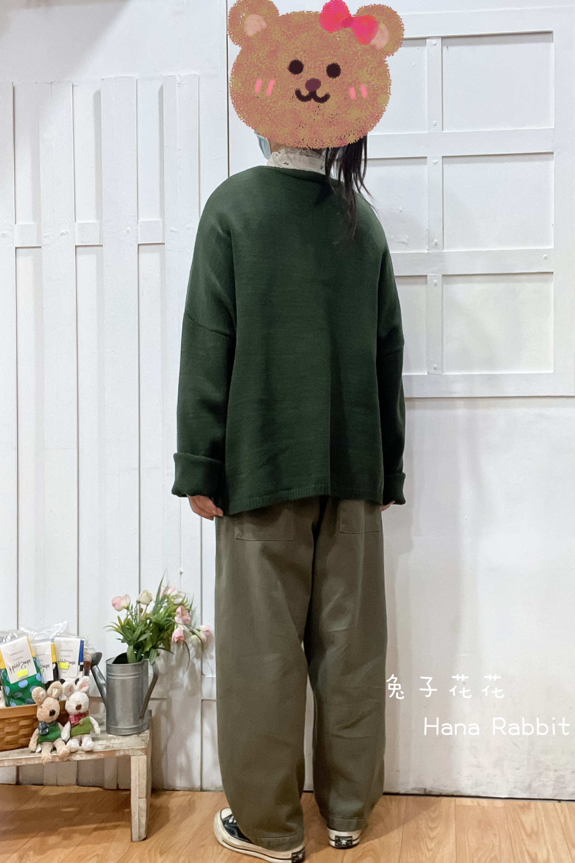 日系V領小口袋簡約針織毛衣(綠) 21108