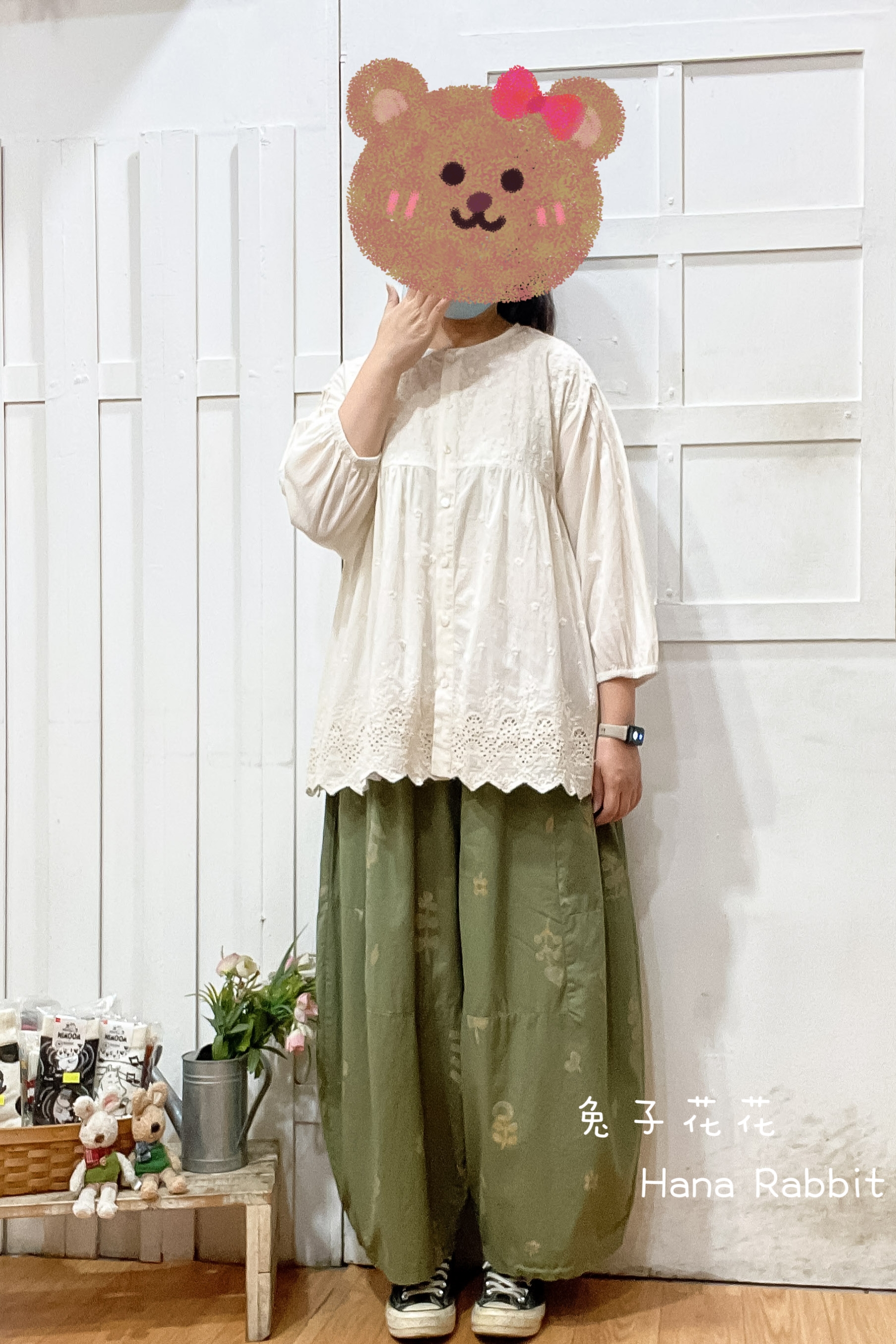森系親膚簍空不規則蕾絲上衣(杏) 14045