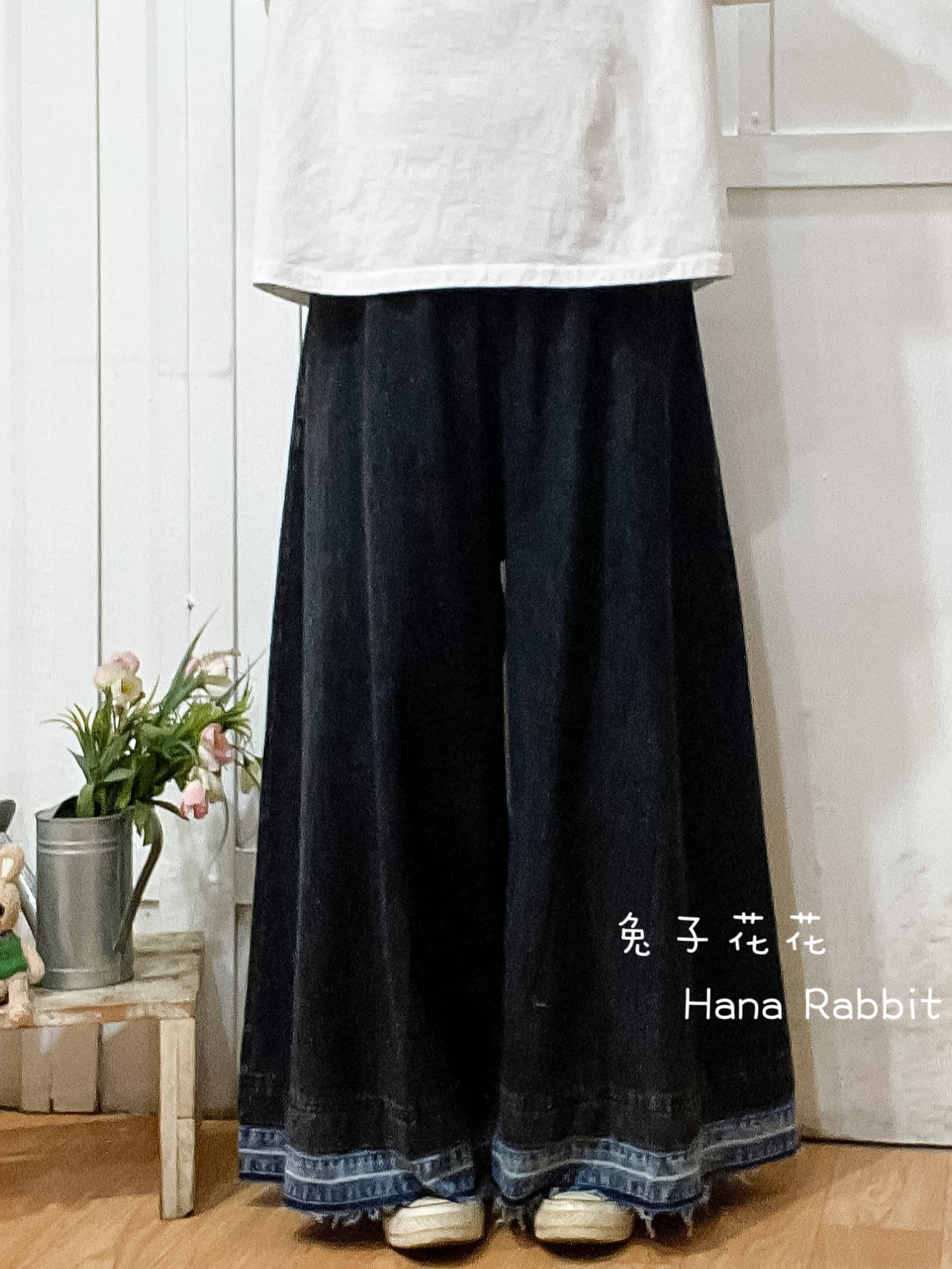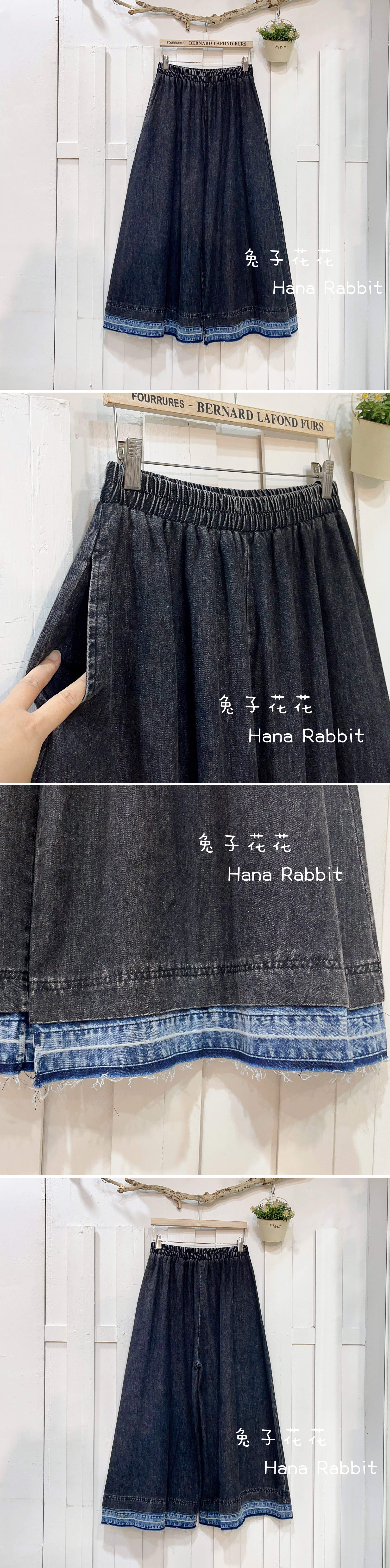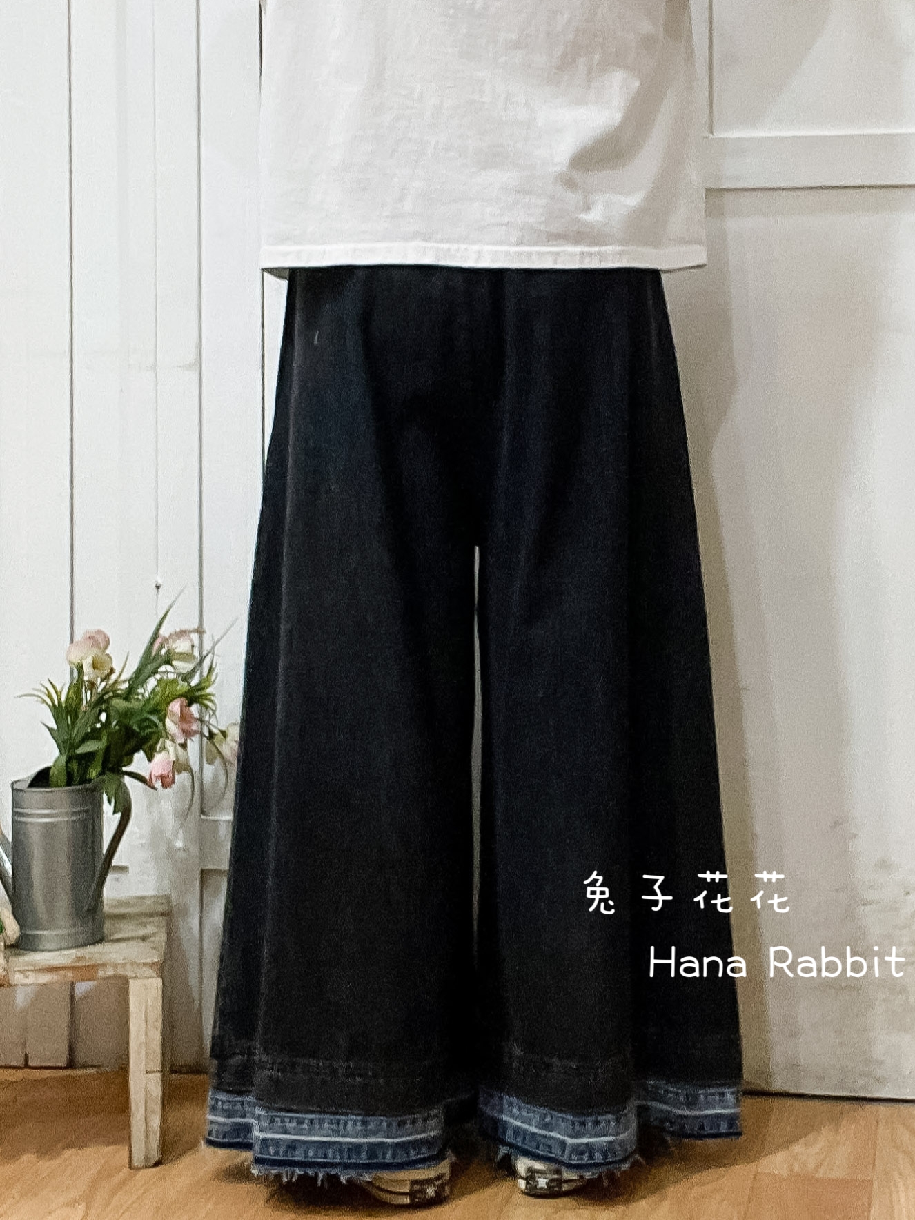 森系丹寧不修邊闊腿造型褲 16532