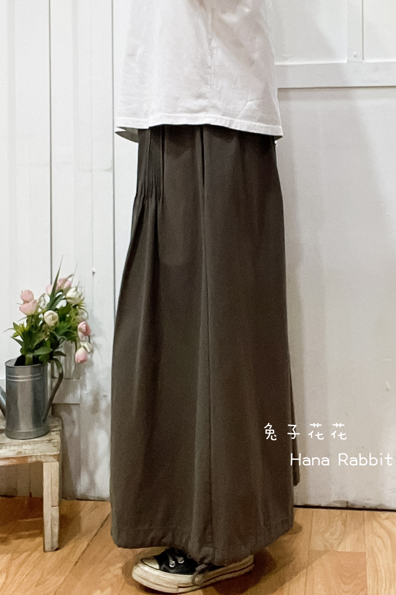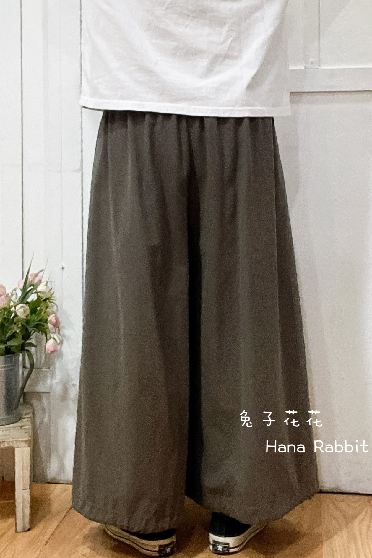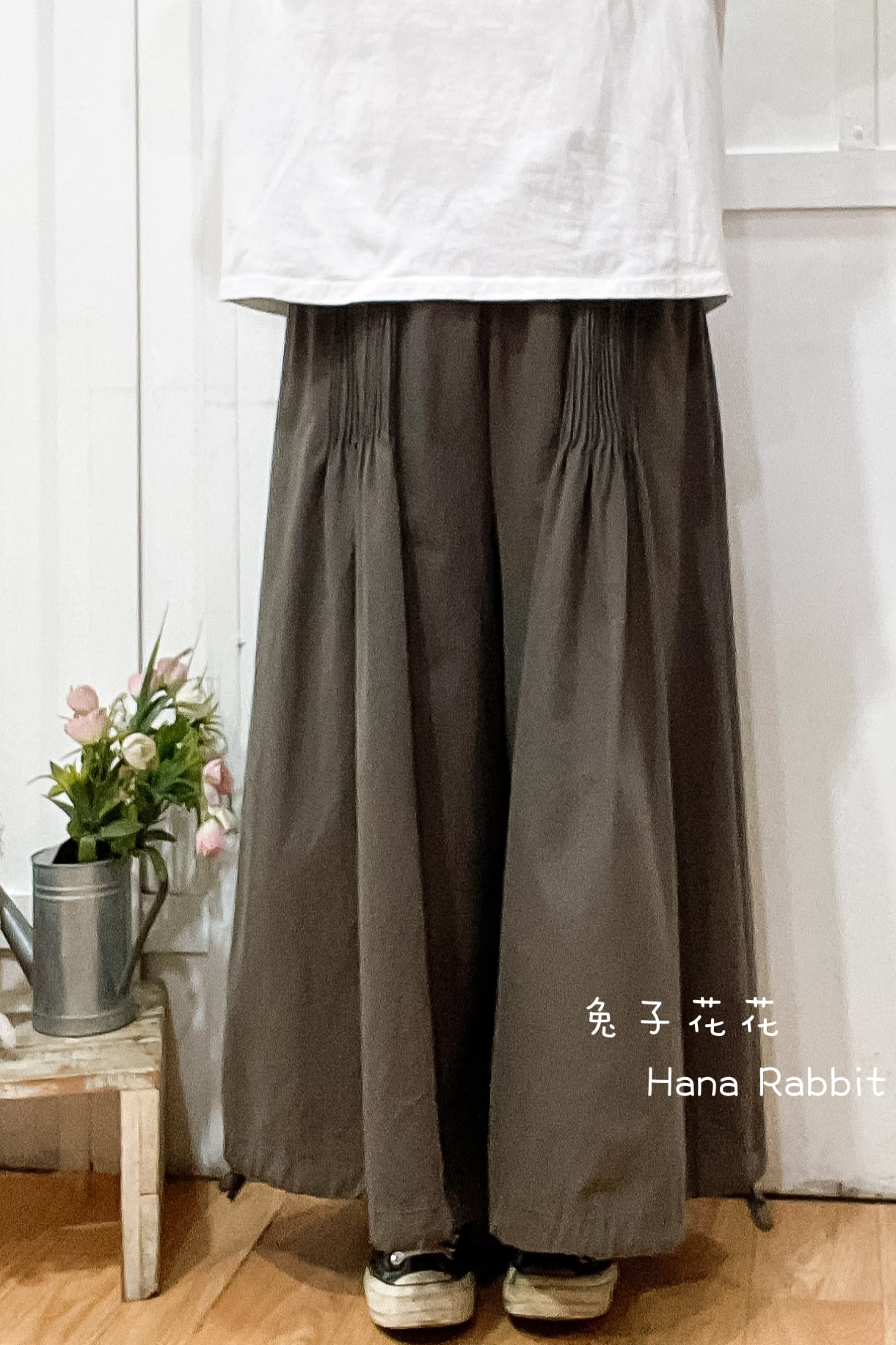 森系壓摺可縮腳闊腿寛褲裙(灰) 31101