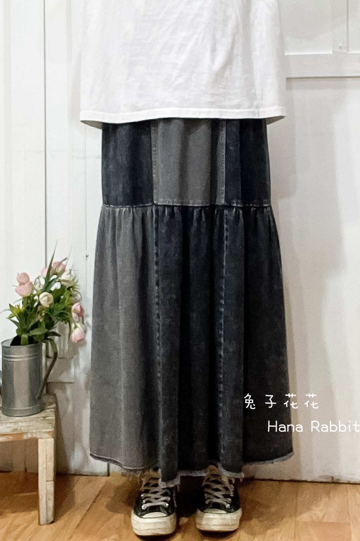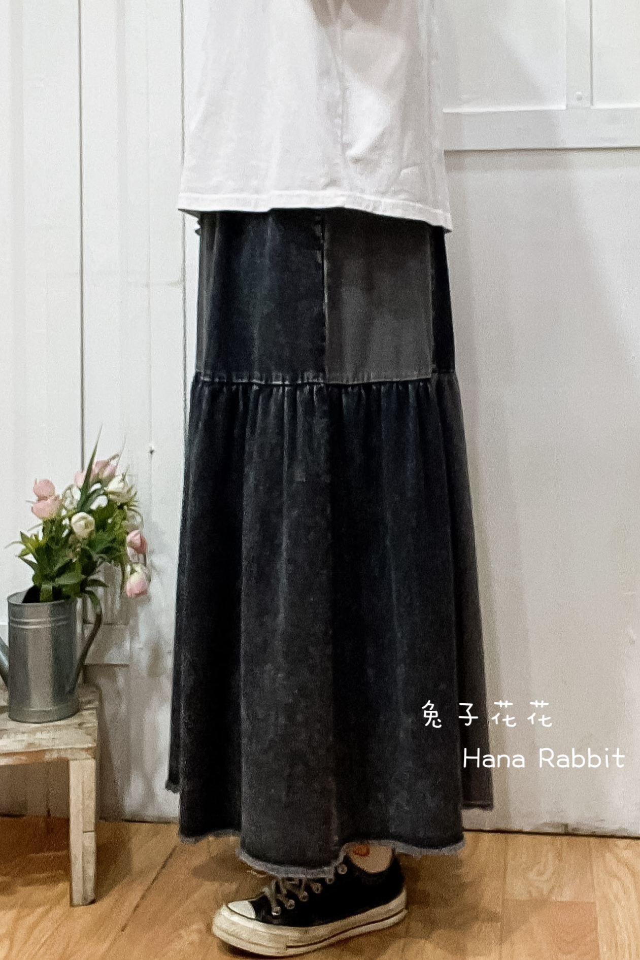 森系復古水洗簡約造型裙(黑灰)) 16575
