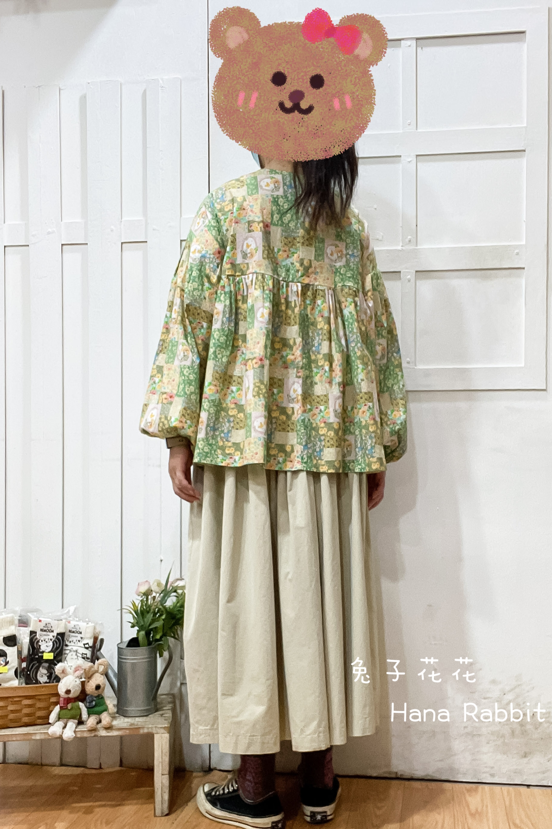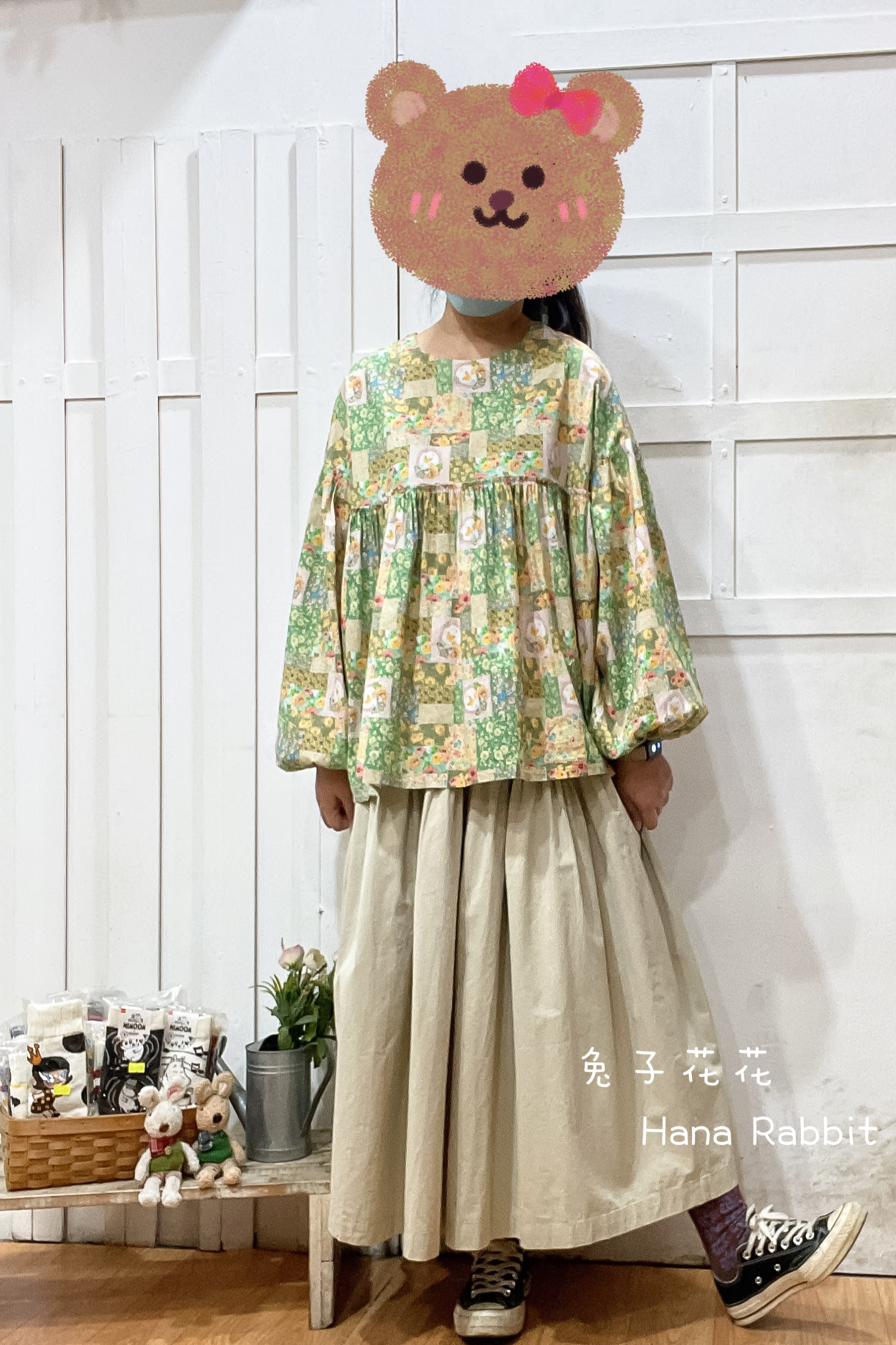 跳繩狗撞色口袋重磅棉上衣(綠) 13307