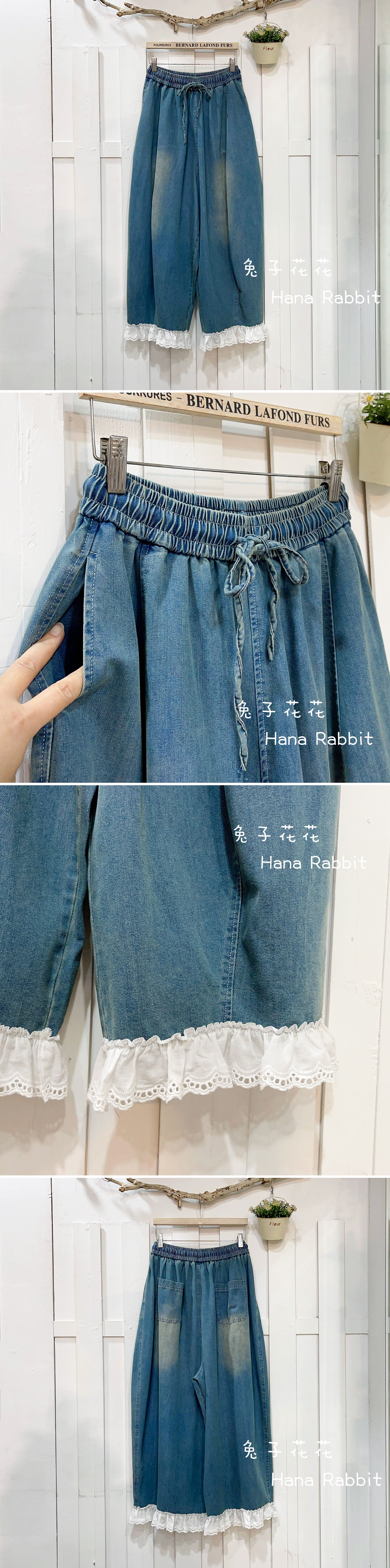 森系蕾絲花邊休閒闊腿造型褲(藍) 20430