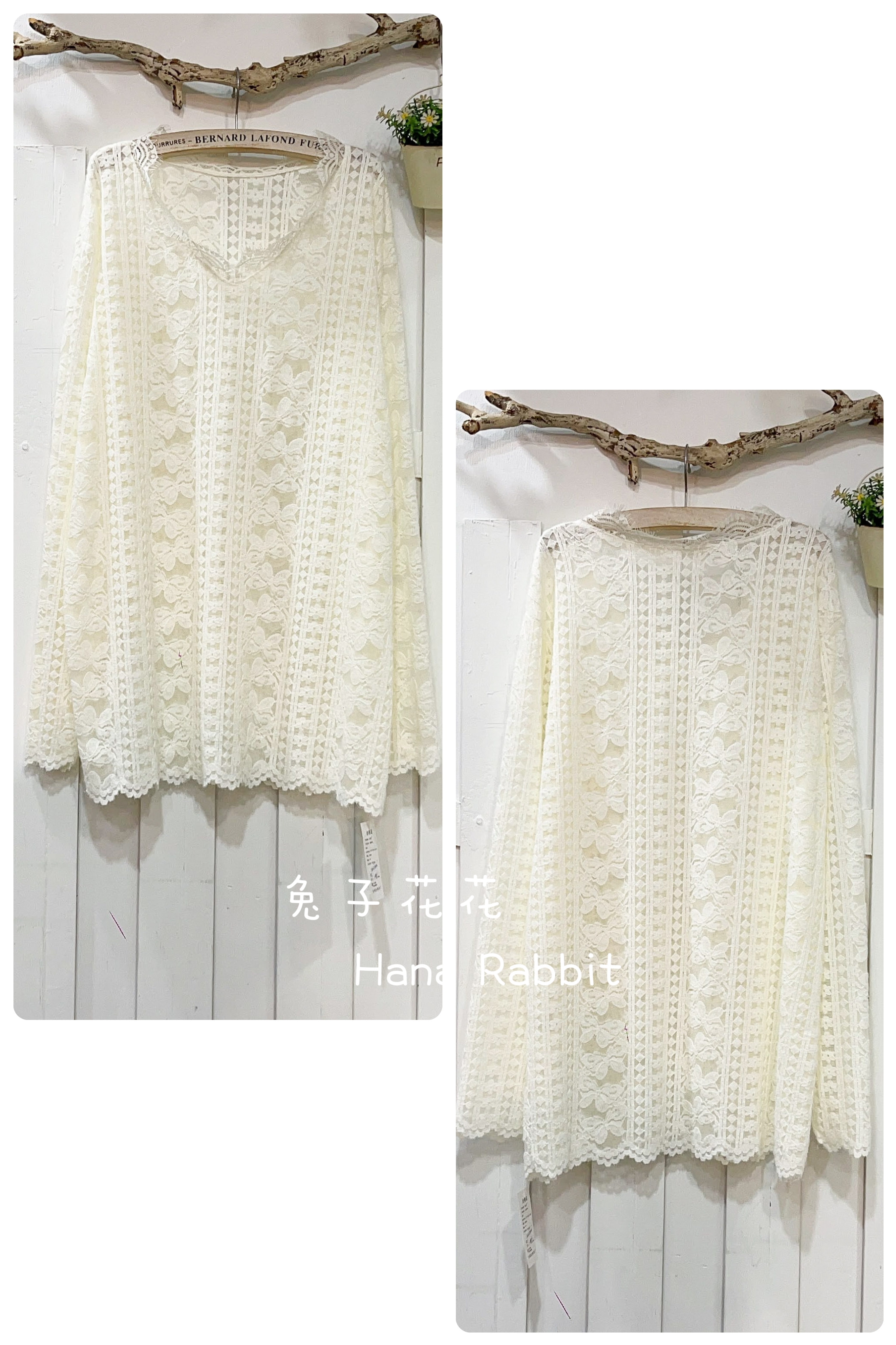 森系親膚簍空V領磨毛蕾絲內搭衣 13047