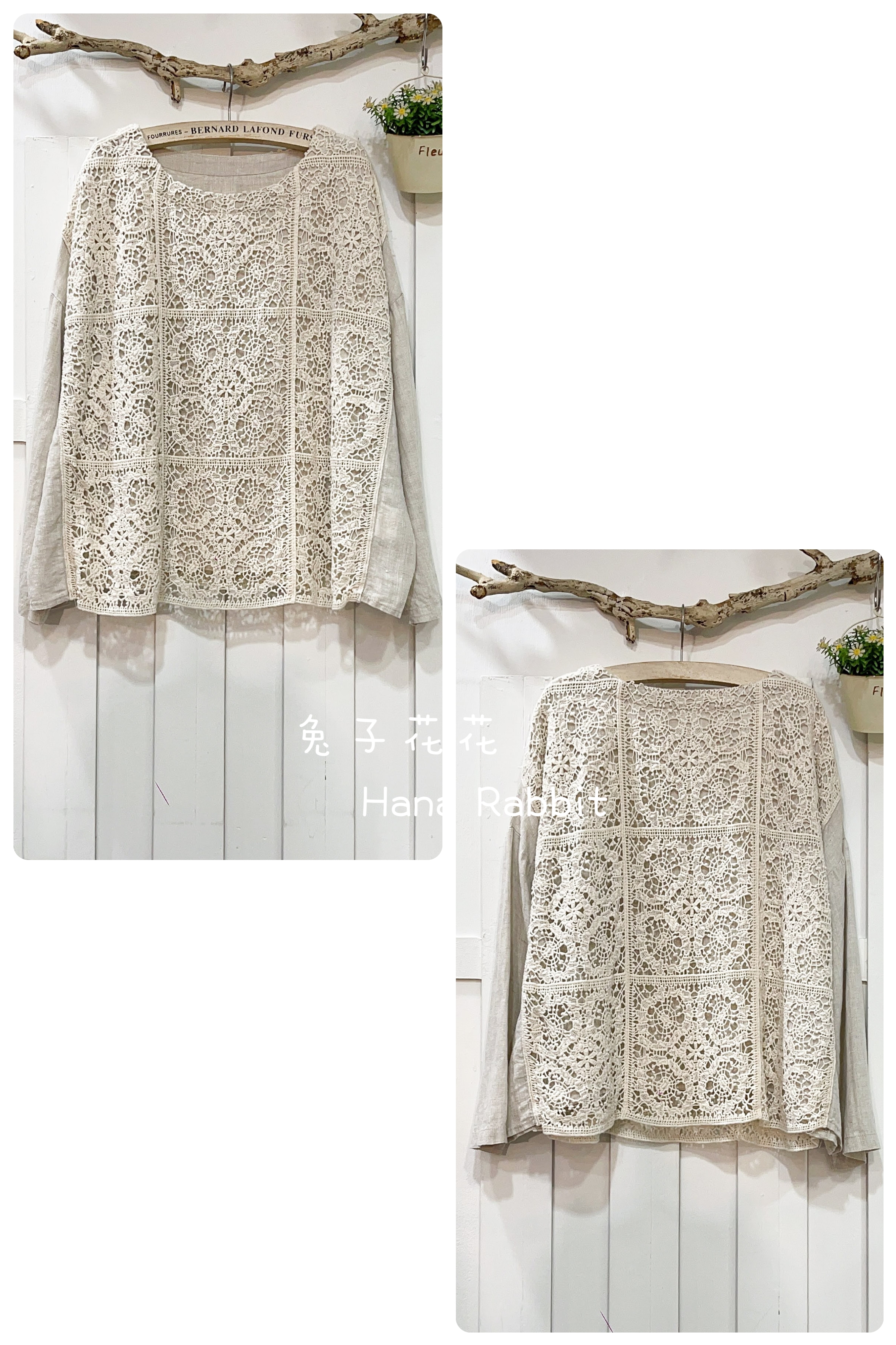 森系重工拚接蕾絲棉麻上衣 12259