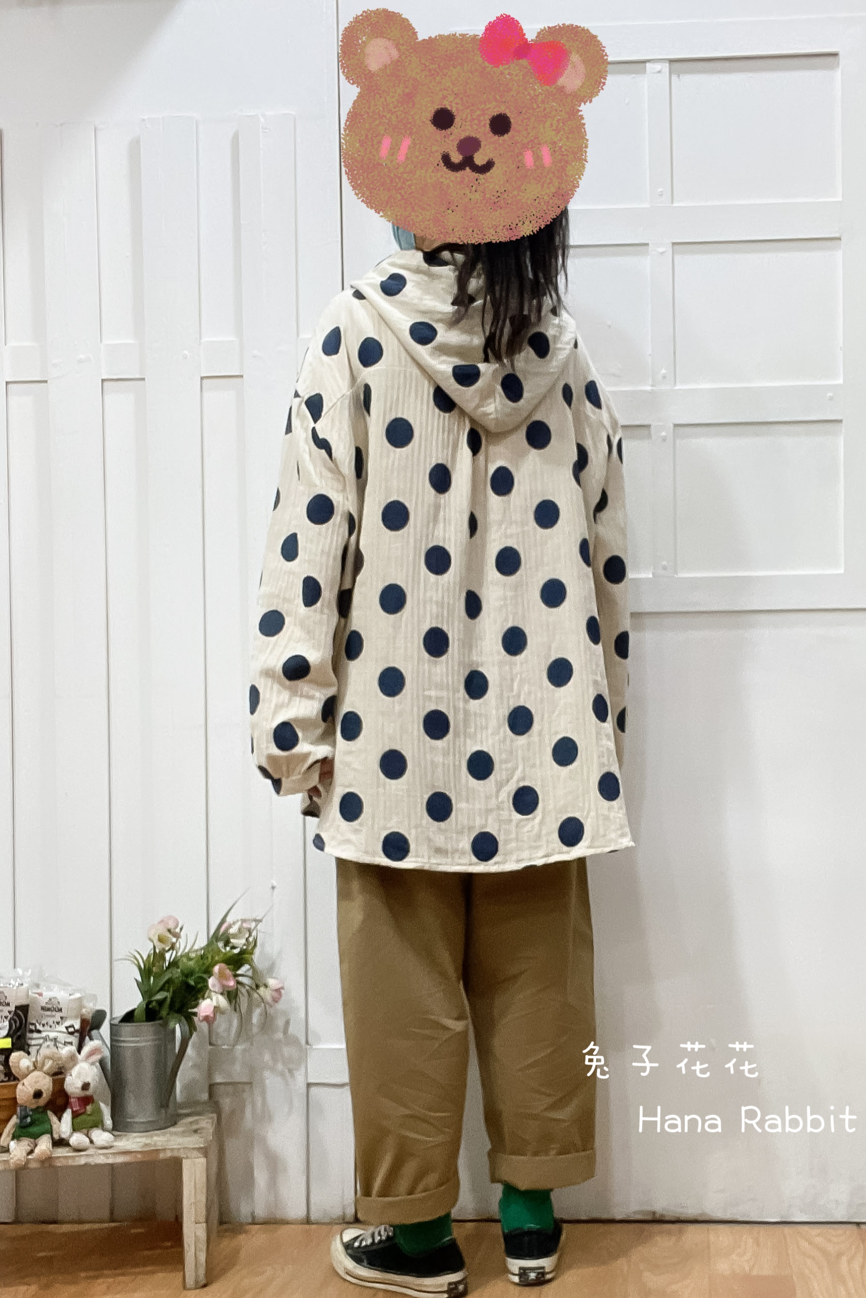 波點印花連帽開襟衫 14437