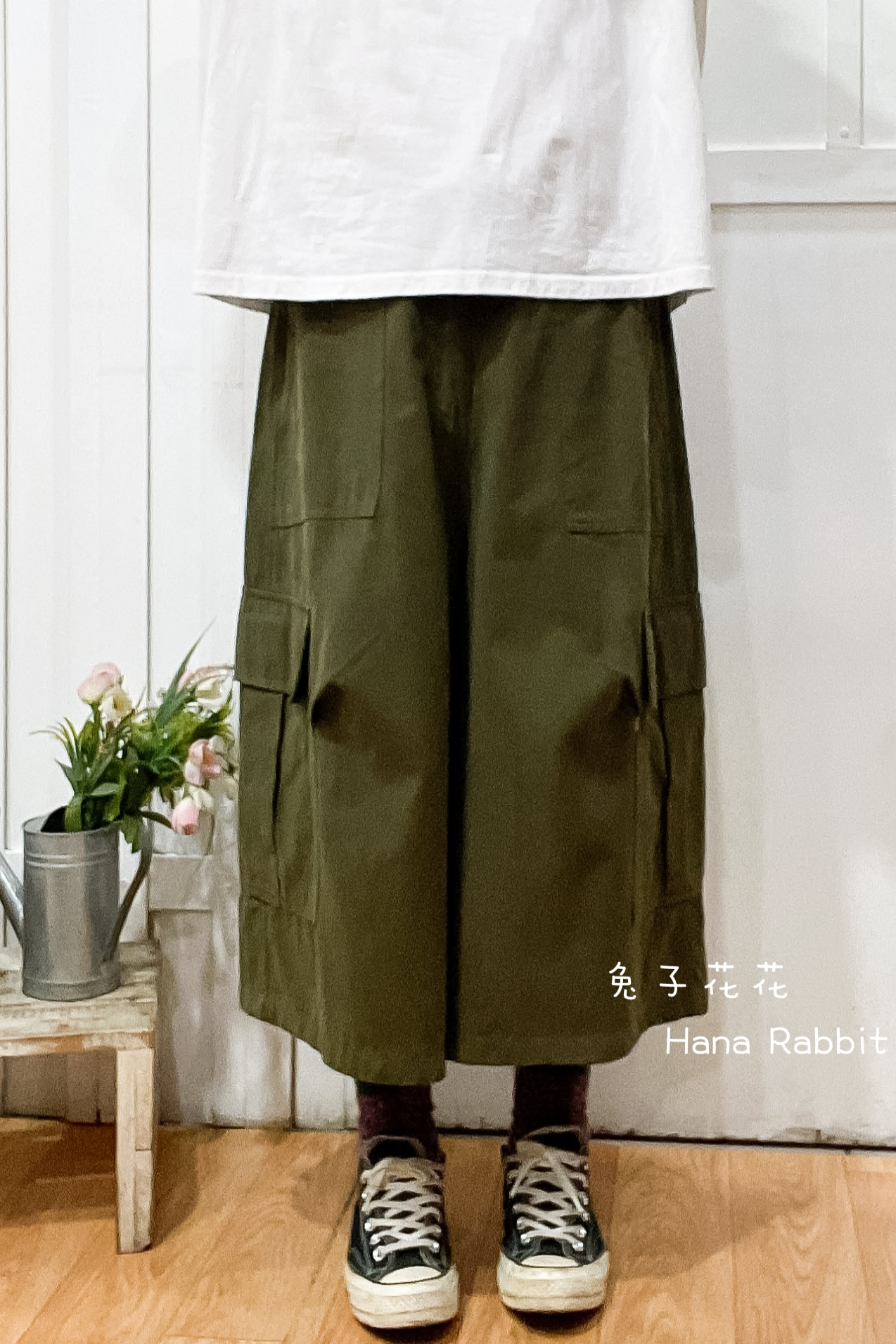 熱賣追加❤❤WE家工裝八分闊腿造型褲(綠) 17334