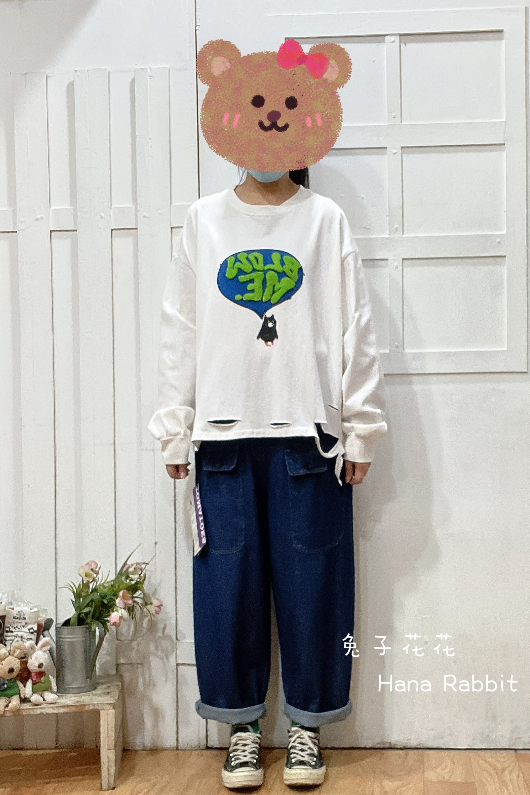 破損感羊羔絨字母棉質上衣(白) 31007
