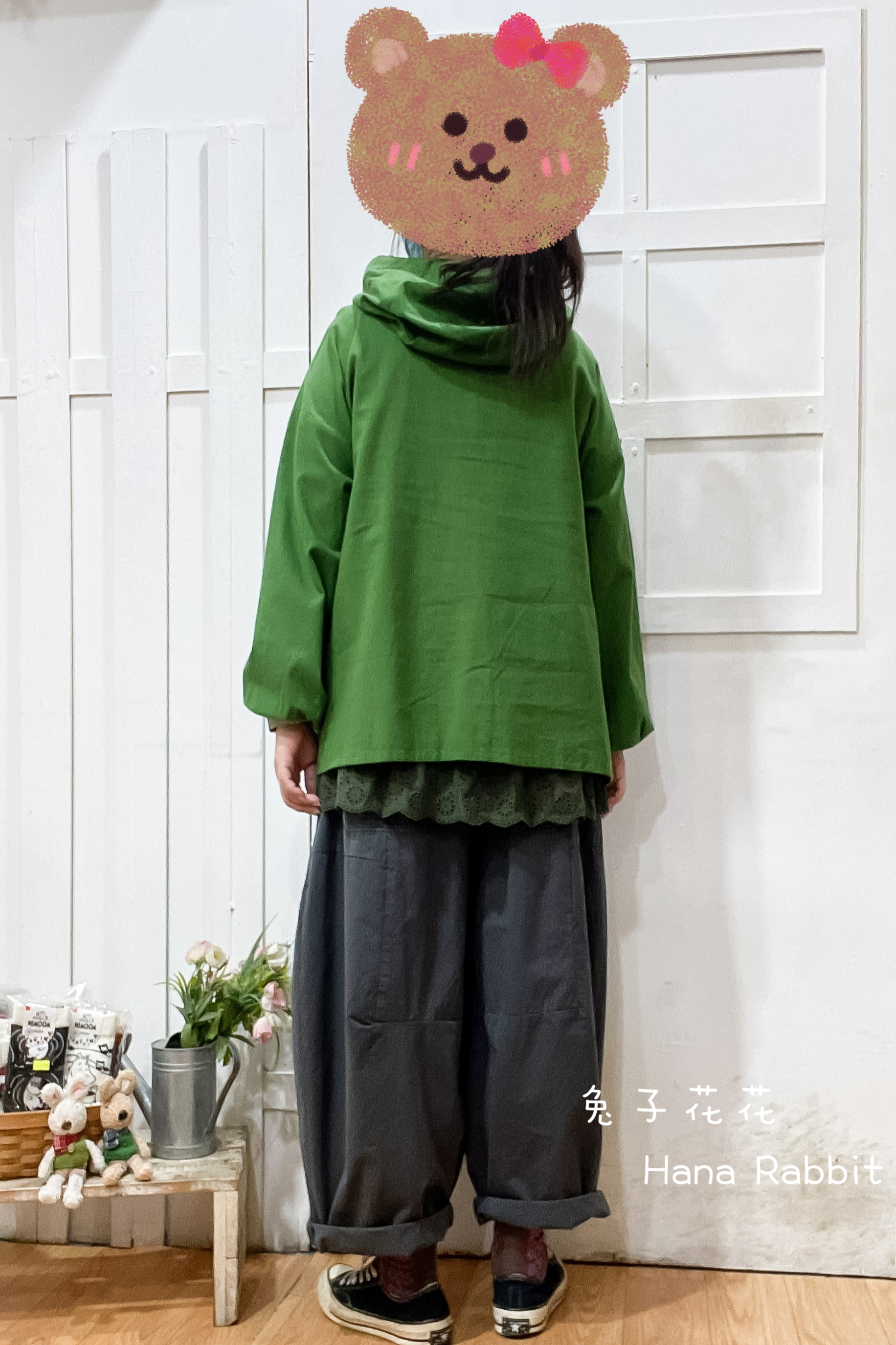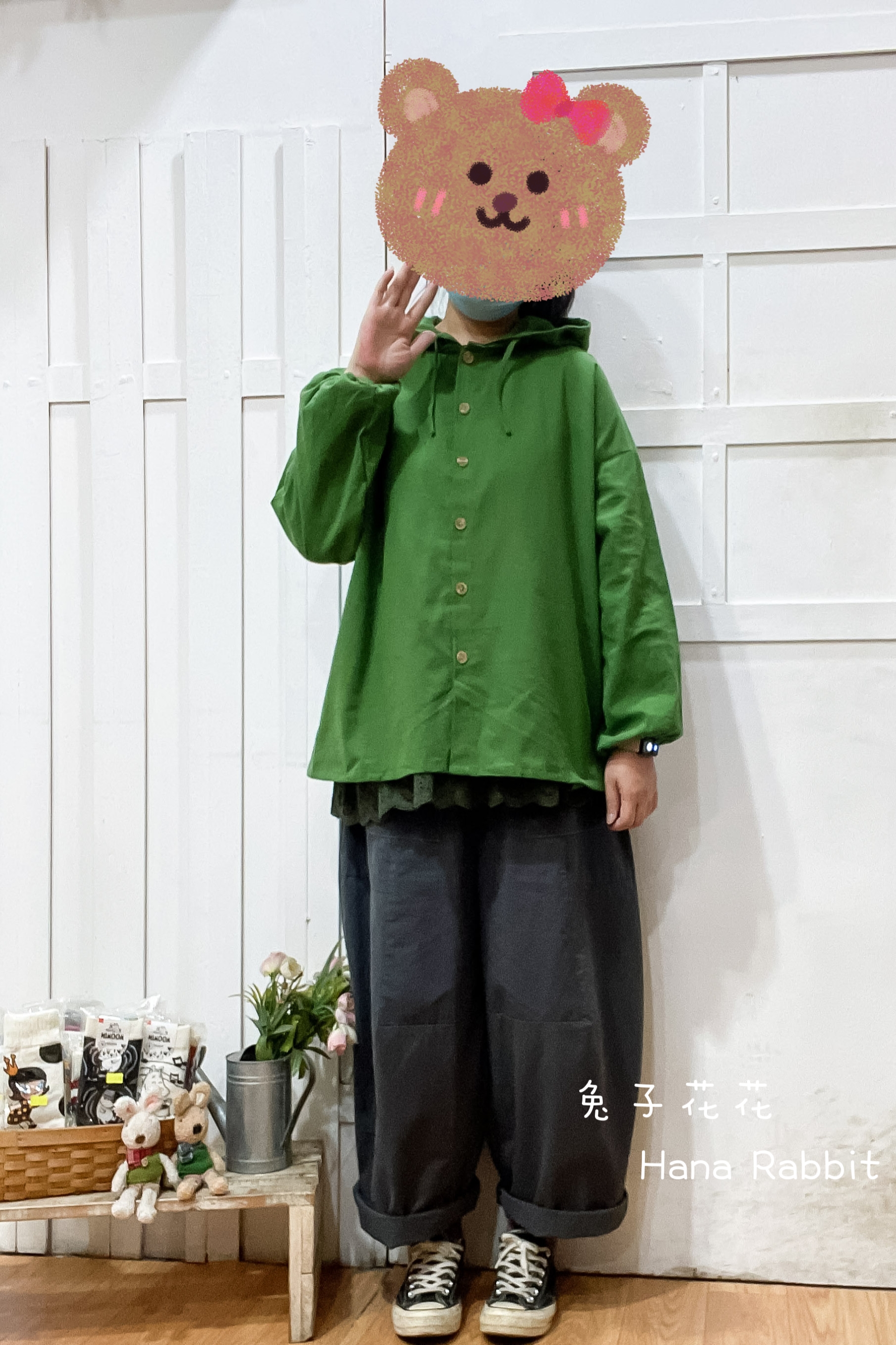 簡約好搭配連帽開襟棉麻上衣(綠) 19336