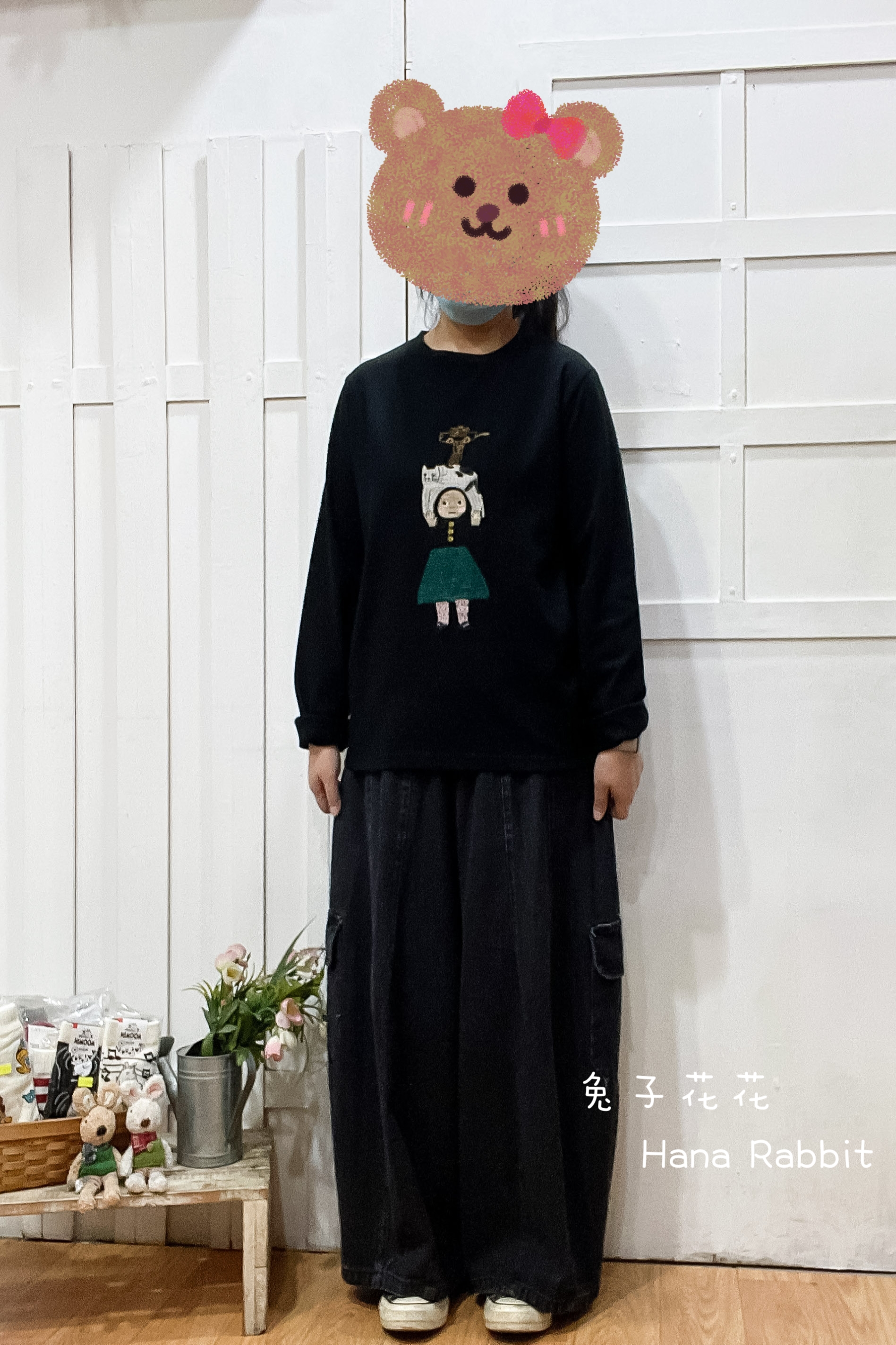 貓與女孩重磅棉上衣(黑) 16353