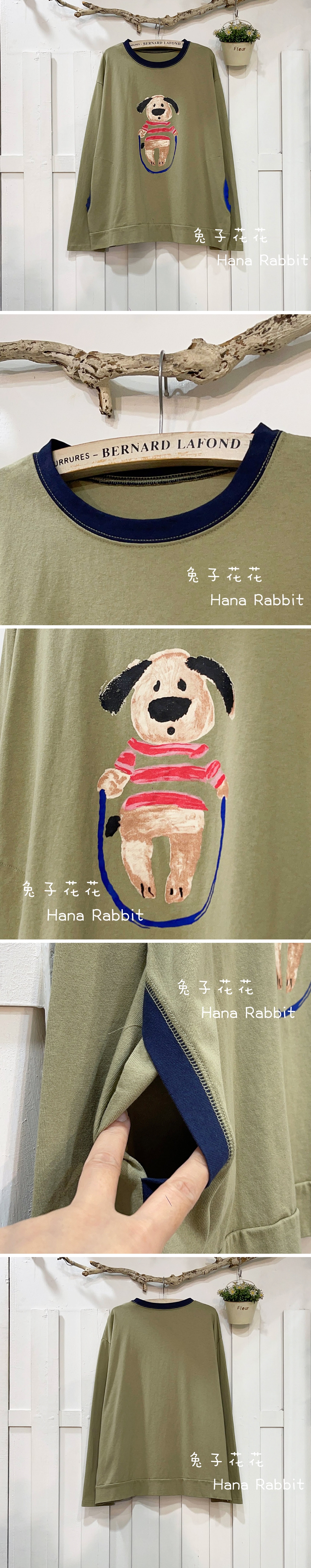 跳繩狗撞色口袋重磅棉上衣(綠) 13307