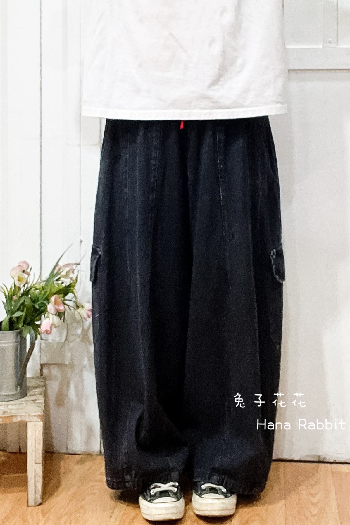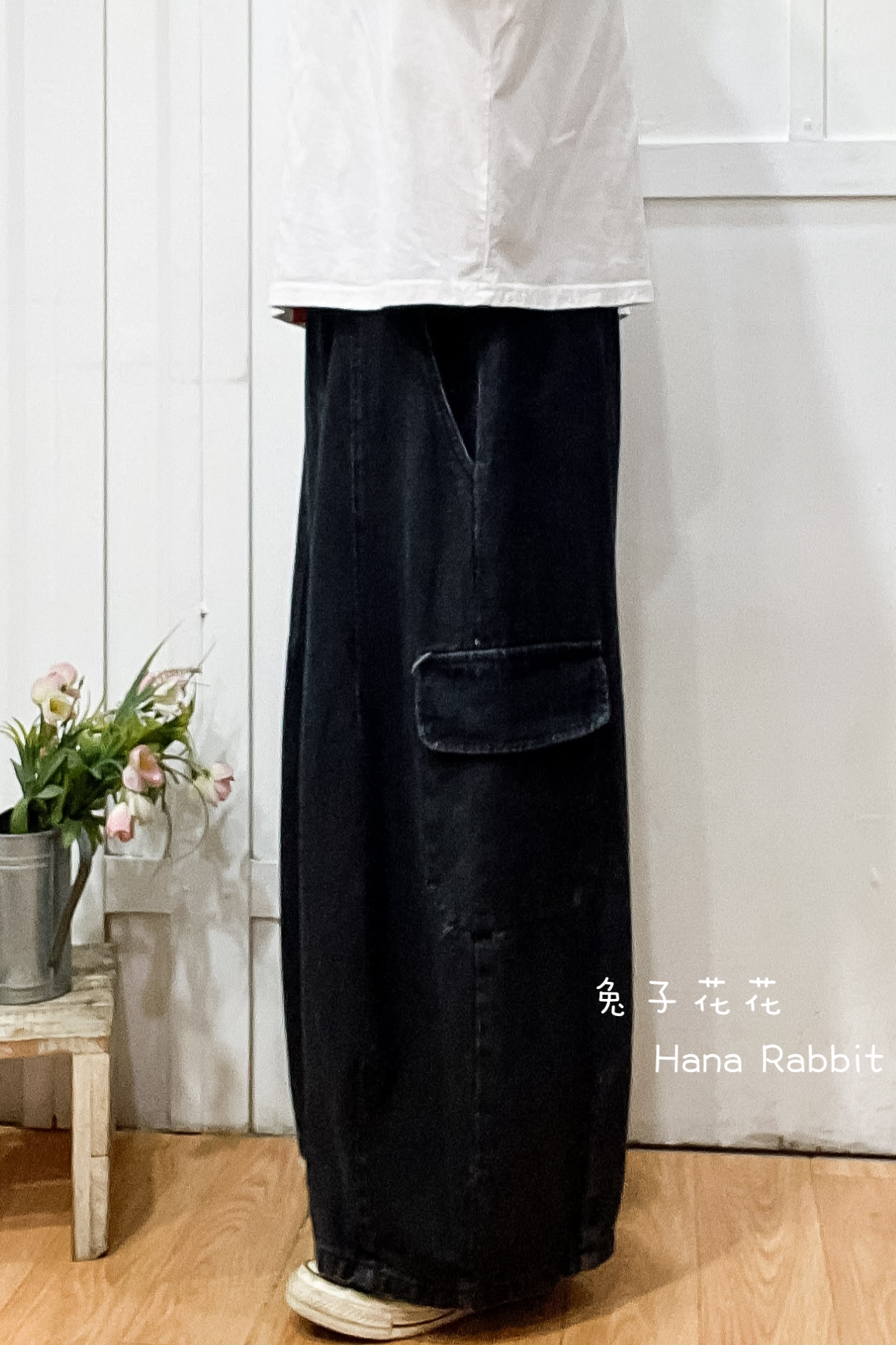 WE家丹寧闊腿工裝褲(黑) 16639