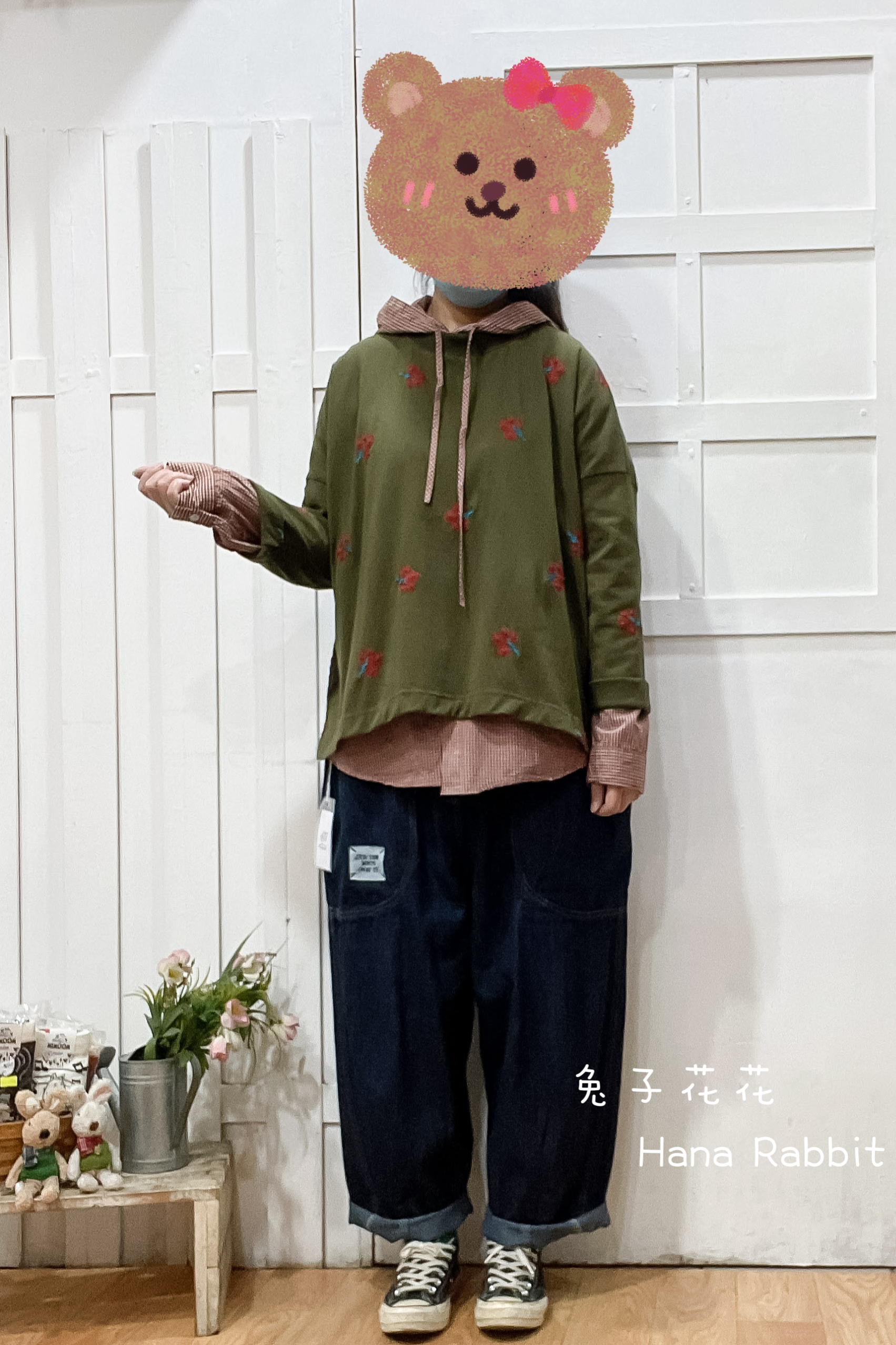 WE家刺繡花重磅棉上衣(綠) 15441
