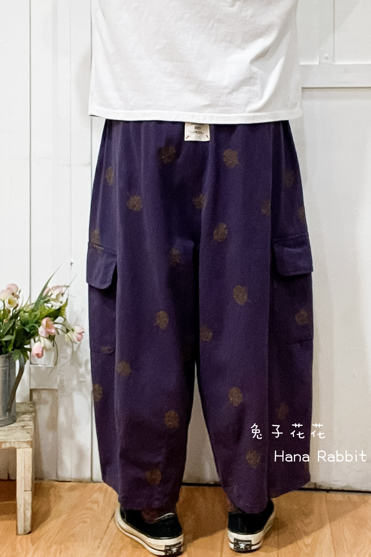 WE家刺繡花闊腿工裝褲(深紫) 17169
