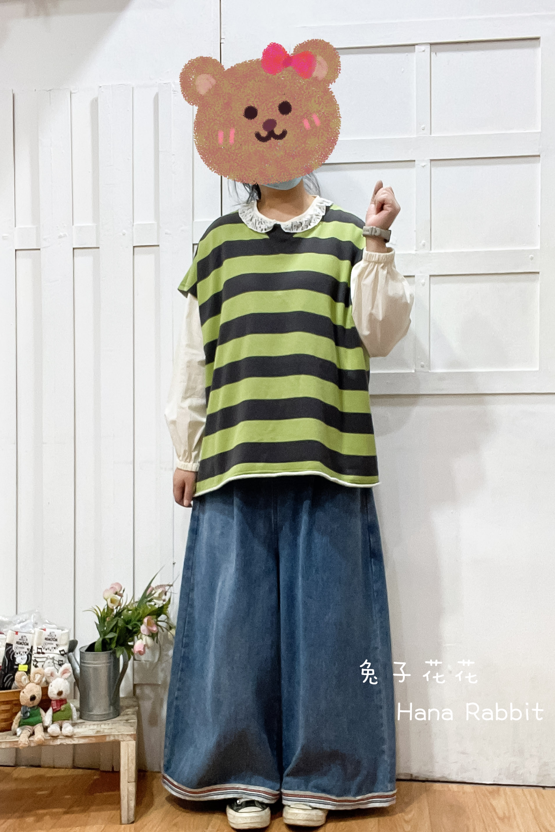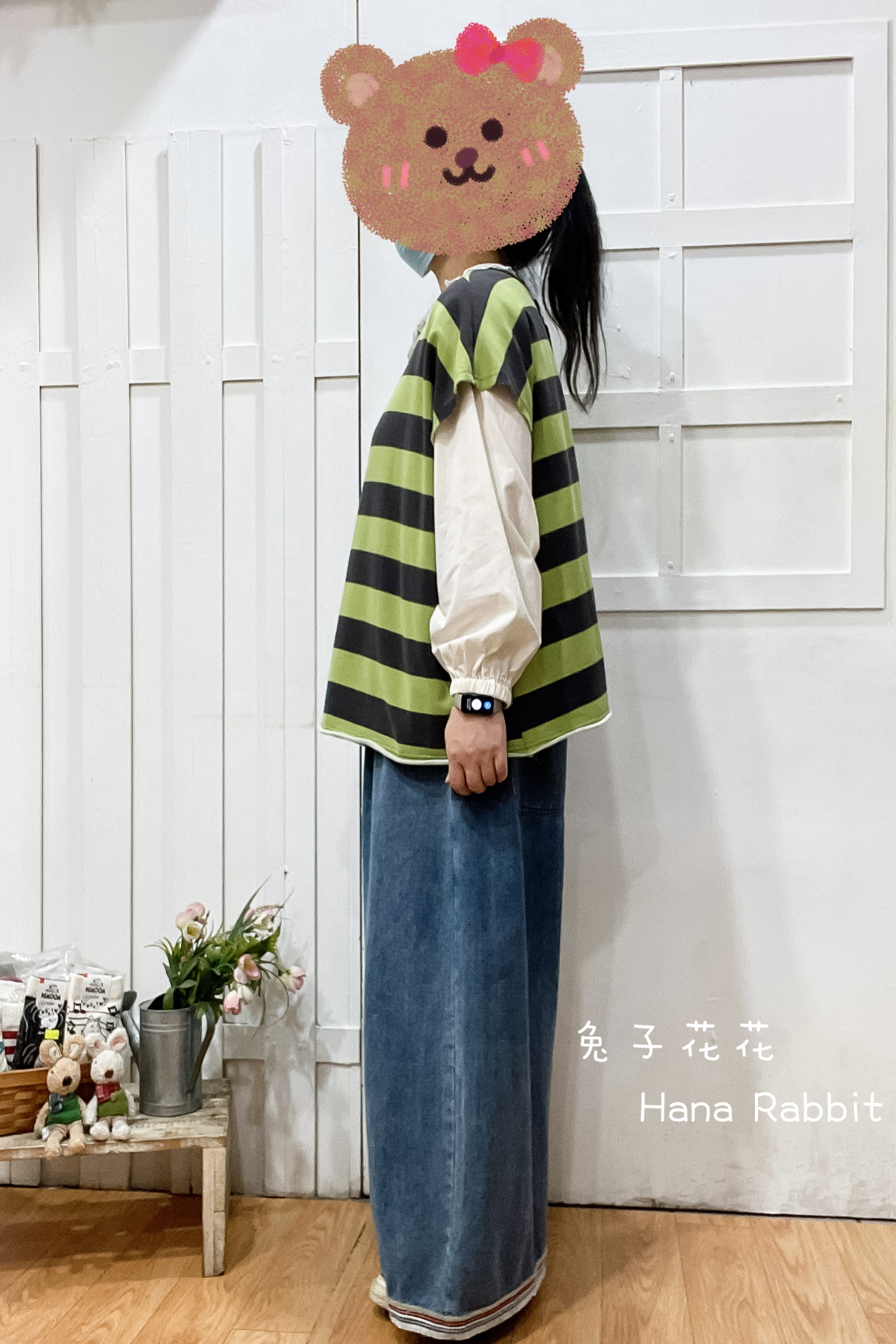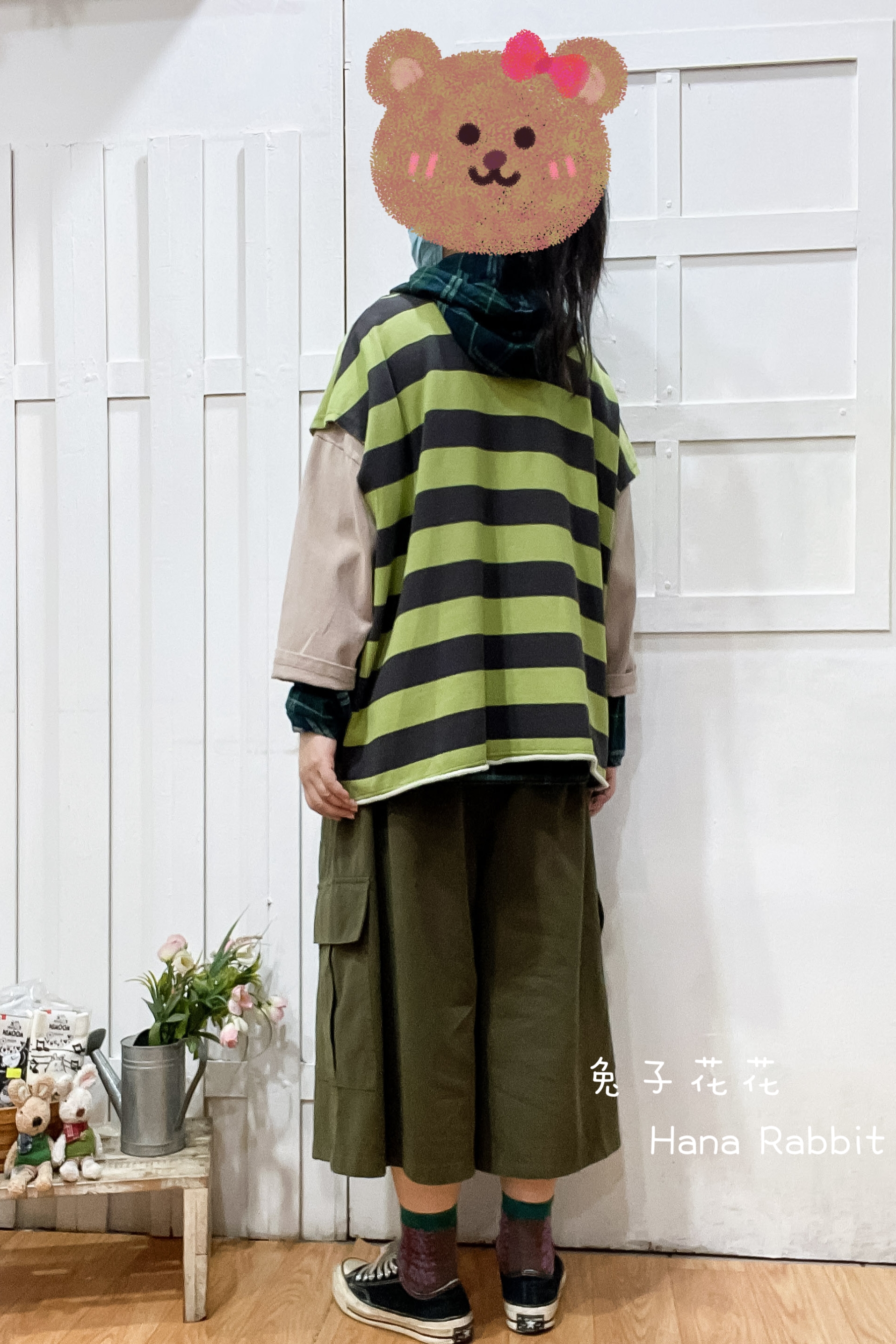 WE家前後2穿條紋毛圈棉背心(綠) 19425