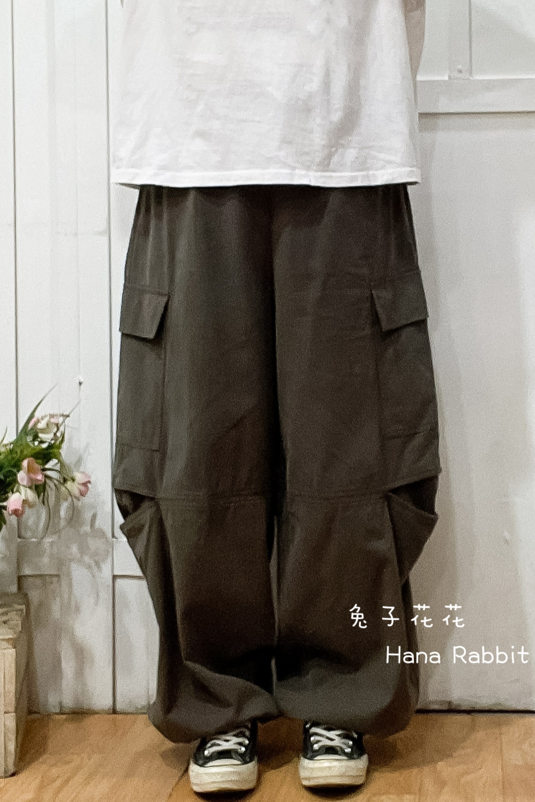 WE家可縮腳落地工裝造型褲(灰) 31017