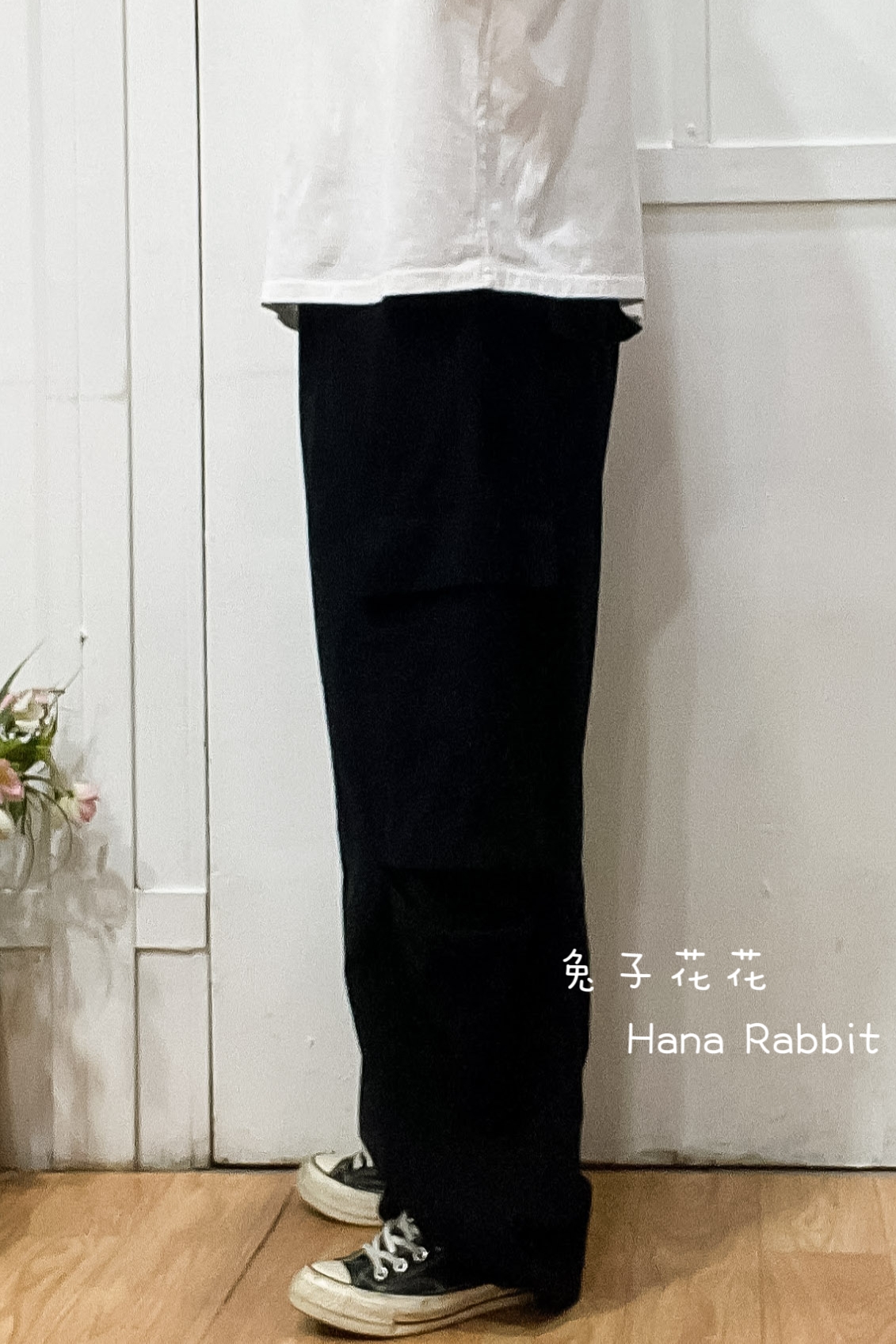 WE家可縮腳落地工裝造型褲(黑) 31017