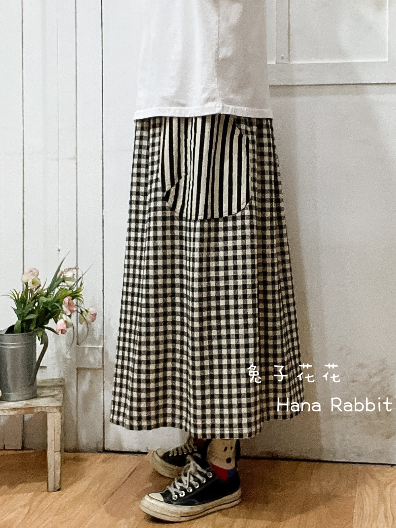 WE家大小格拚接造型裙(黑格) 30909
