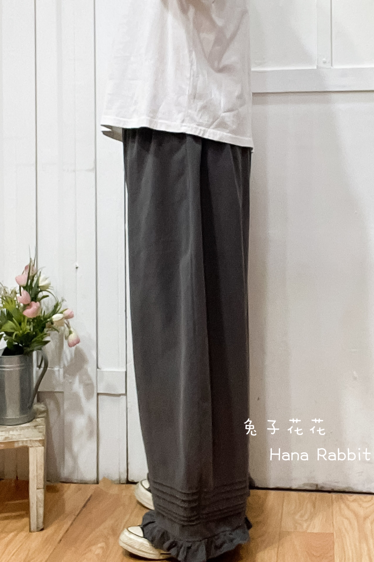 WE家寛鬆荷葉下擺闊腿造型褲(灰) 17605
