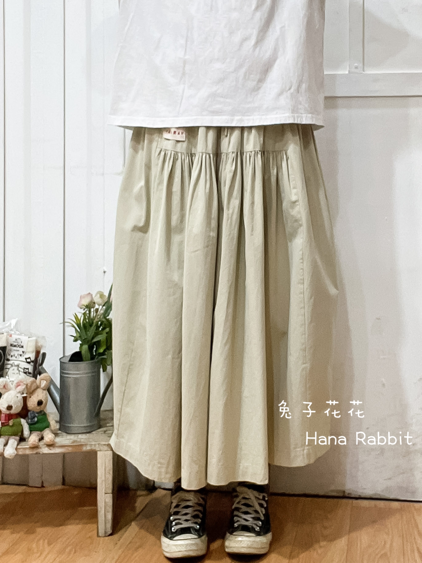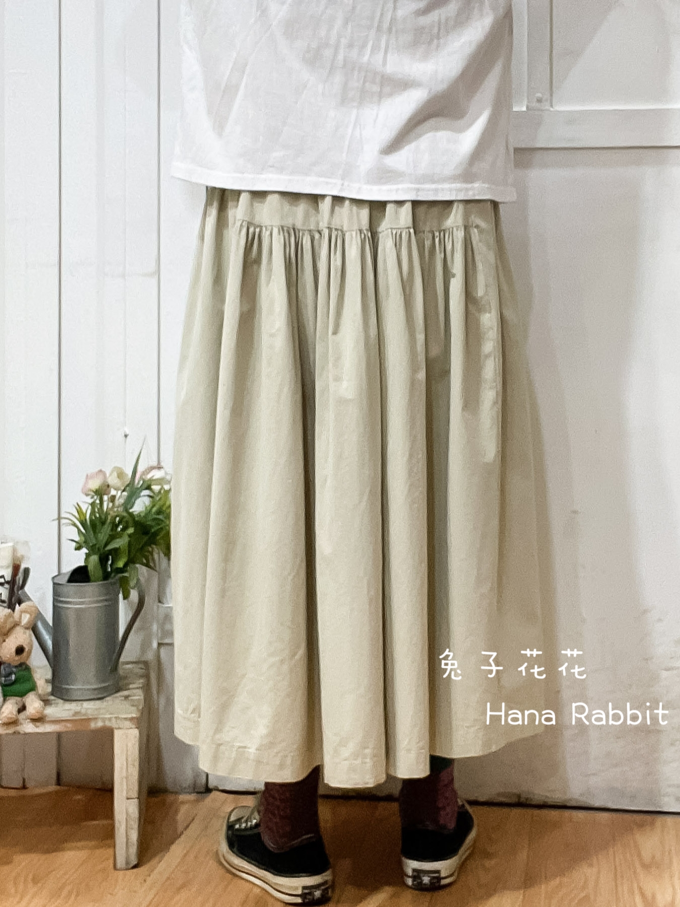 WE家小布標休閒大擺造型裙(米) 17580